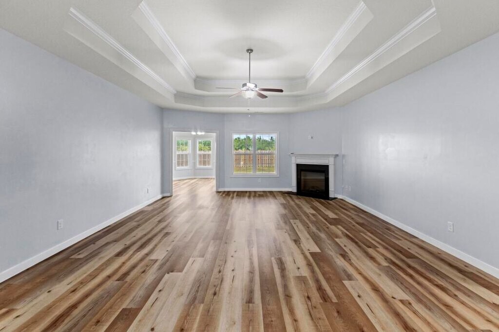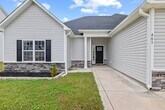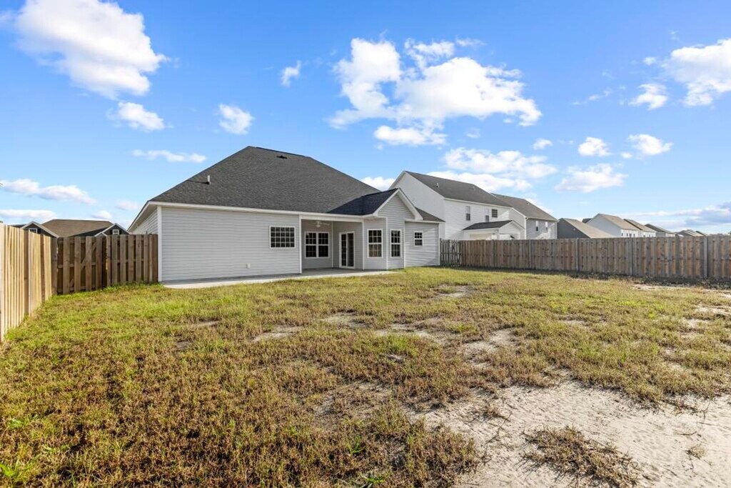 This stunning 4-bedroom, 2-bathroom residence, located in the desirable Towne Point community of Onslow Bay, offers a wealth of luxurious amenities. The home features a split bedroom floorplan, providing ample privacy and space. The main level primary bedroom boasts a beautiful trey ceiling, two walk-in closets and an en-suite bathroom with a deep soaking tub, walk-in shower, and his/her sinks. The eat-in kitchen is a chef's delight, equipped with a stainless steel appliance package and granite countertops. The open living area is accentuated by an electric fireplace, creating a warm and inviting atmosphere. Off the kitchen sliding doors you'll find an extended partially covered patio overlooking a privacy fenced yard, perfect for outdoor entertaining. The property comes with a washer/dryer (as is). 2 pets with owner approval, $150 non-refundable pet fee per pet, no bully breeds. As a resident of Towne Point, you'll also have access to a community pool. This home is a perfect blend of comfort and modern living.