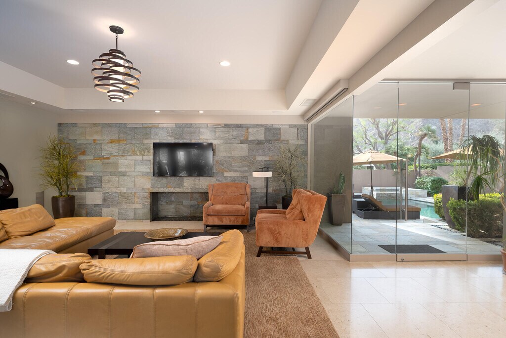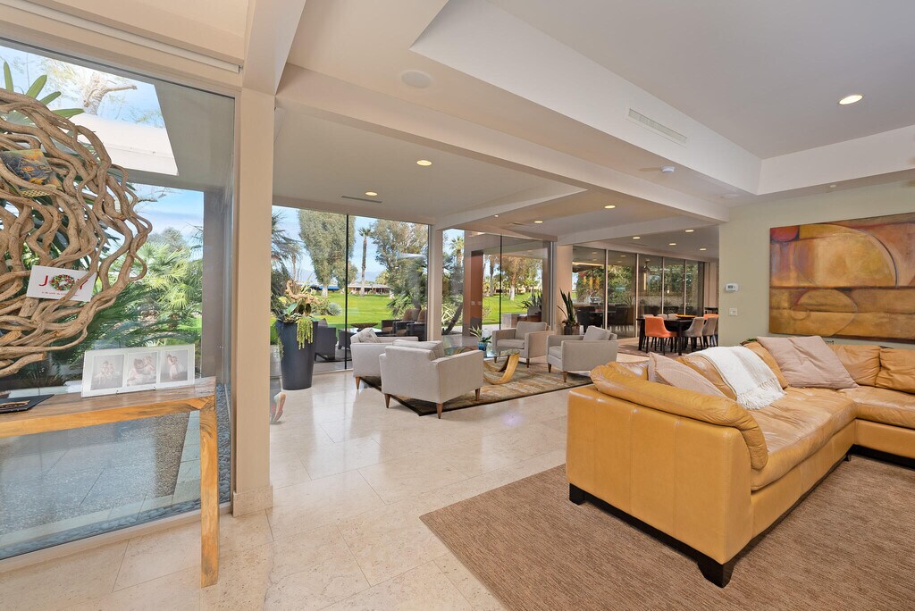 Karen Webster( *Booked JAN FEB MARCH APRIL 2026* ) Fabulous custom built home with 3-bedroom suites and 4 bathrooms. Located on a cul de sac in Indian Wells Country Club and on the golf course. You will have a very private saltwater pool & spa located in the front courtyard and not on the golf course. The open floor plan is the essence of California casual luxury living. Walls of glass bring organic natural light into the living spaces. You will have it all - privacy and mountain views and a golf course view. The covered back patio on an elevated lot is ideal for entertaining! The island kitchen features gas range and stainless appliances. Smart TV in living room. SONOS sound system. Remote control gas fireplace. The primary bedroom suite boasts spacious walk-in closet. Full size washer & dryer inside. Attached 2-car garage with direct access. Indian Wells Country Club is a member of the INVITED family of clubs (formerly ClubCorp). For seasonal rental bookings, wireless Internet, television services, plus utilities up to $300-mo are included. For annual lease terms tenant pays screening fees, utilities and Internet. HOA fees, landscape maintenance, pool maintenance is included regardless of booking type. 24-hour manned gate & roving patrol. Indian Wells CC is a member of the INVITED family of clubs (formerly Clubcorp). No memberships are included. Concierge trash service means you never have to worry about which day is trash day. Contact agent for availability.