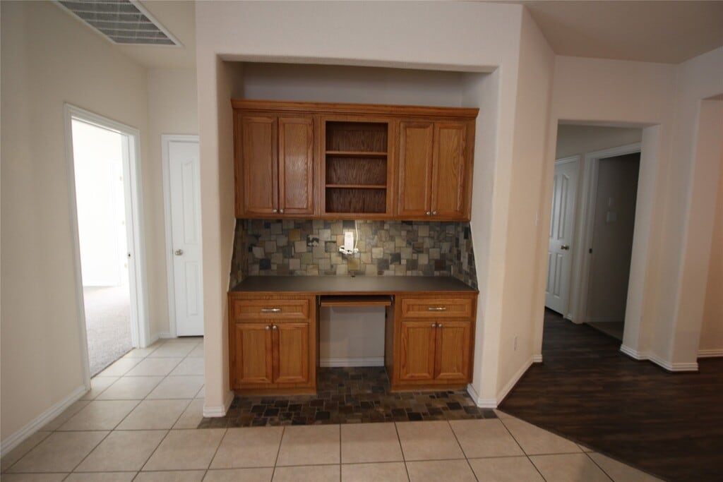 Beautiful 1 story home in Parks at Walnut Bend. This small,quiet neighborhood is located close to Centennial Park in Pearland. You will love the look and ease of care of the wood-look vinyl flooring. The kitchen is open to the den and breakfast room. There is a built-in desk for your compuer just off the kitchen. The kitchen has lots of cabinet space to store all of your things and lots of counter space to work with. The stainless refrigerator is included. The family room has high ceilings and is spacious. The master suite offers a bay window for natural lighting. The master bathroom has dual sinks,a separate shower and a whirlpool tub for relaxing in. Work from home in the study with French doors for privacy. There's are several energy efficient features including double paned windows,and a nest thermostat. MLS# 80140632