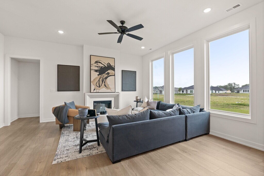 Stunning,brand new 3-BR,2-BA single-family home with a 3-car garage for rent in The Brooks. The home features beautiful wood floors,quartz countertops,split bedroom design,electric FP,and a covered patio. Unfurnished. Tenant will also have access to the community pool. All appliances (inc refrig) and a washer/dryer set are included. Window treatments will also be provided. Due to the time of year this is hitting the market,owner is willing to consider a lease term that is less than 12-months,but no month-to-month arrangements. Willing to consider pets. No smoking permitted on the premises. Utilities are the responsibility of the tenant. Lawn care is also the tenant's responsibility,although it can be included in the lease for an additional fee. $40 application fee per adult.