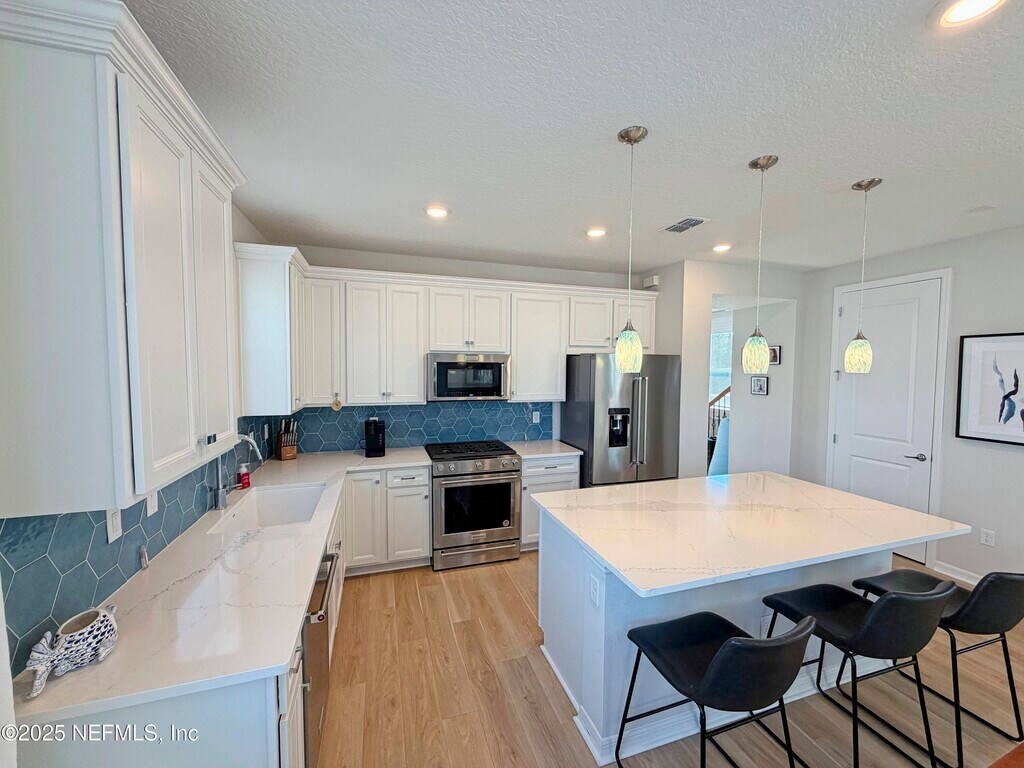 Lawn care Included! Amazing two-story 3- bedroom,2.5 - bathroom + office home loaded with designer touches throughout,this was the model home which features too many upgrades to mention. This Home has LVP & tile flooring throughout,an open-concept layout with a spacious kitchen boasting a large island,kitchen aid stainless steel appliances,tiled backsplash and quartz countertops that flows seamlessly into the living and dining areas,laundry room with washer/dryer included,fully fenced back with courtyard/patio connecting the home to the two-car garage,while the community offers a nearby playground,scenic walking and jogging paths,and even a kayak launch.Application is $75 per person 18 and over. Processing fee of $125 due from Tenant at lease signing. MLS# 2113640