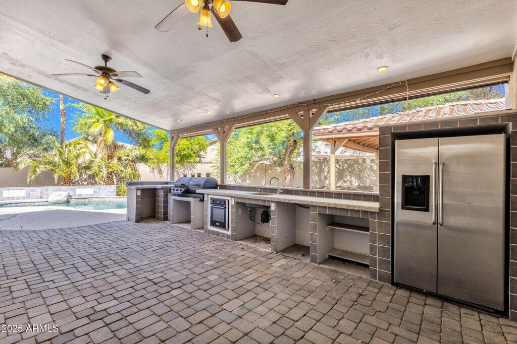 Welcome to 4616 E Gold Poppy Way,a beautifully maintained 4-bedroom,2 bathroom home nestled in a quiet cul-de-sac within the desirable Ahwatukee Foothills community. This 2,082 sq ft single-story residence offers an open floor plan with travertine and wood flooring throughout,vaulted ceilings,a fireplace,an abundant natural light and two HUGE bedrooms. The gourmet kitchen features granite countertops,a center island,high-end appliances,beverage fridge and ample storage,making it perfect for culinary enthusiasts. The spacious master suite includes a walk-in closet and an en-suite bathroom with a soaking tub,separate shower