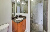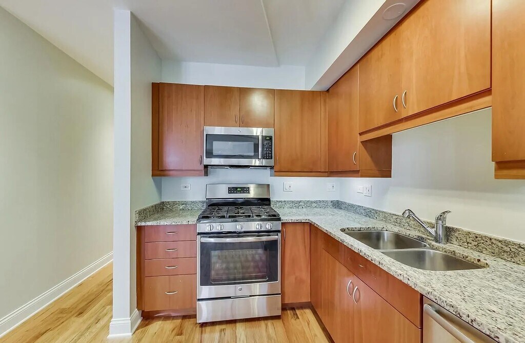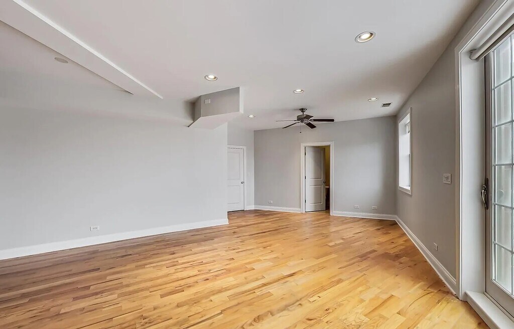 stylish soft-loft with incredible volume and natural light throughout. and a custom display niche above-perfect for art, books, or media. Diagonal hardwood floors flow seamlessly into the spacious kitchen, which offers 42" shaker-style maple cabinetry, faux-granite countertops, and stainless steel appliances. A generous half bath on the main level includes a pedestal sink and hardwood flooring. The primary suite is truly impressive, featuring a large walk-in closet, sliding doors leading to your private balcony, and a spa-like bathroom with custom tile floors, a maple vanity with faux-granite counters, a six-foot soaking tub, and tiles surround. Loads of closet and storage space. This location is unbeatable-right on the border of Buena Park and Uptown-just steps to Target, Jewel, multiple gyms, coffee shops, great dining, nightlife, and everyday conveniences. The Wilson & Sheridan Red Line stations and several bus lines are just moments away, making commuting easy.