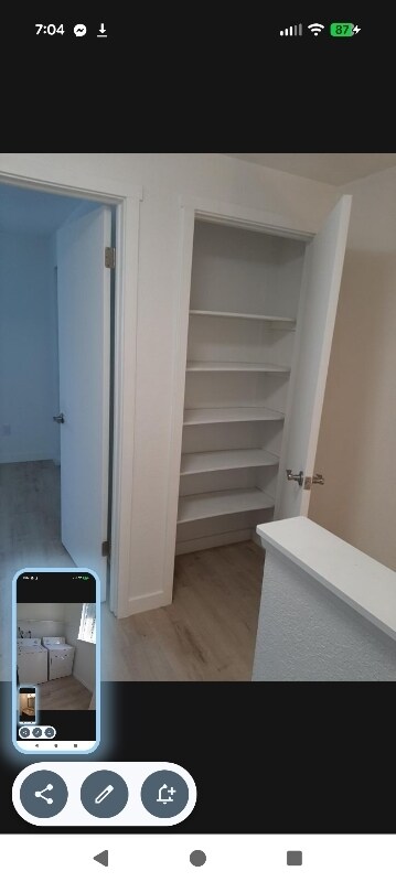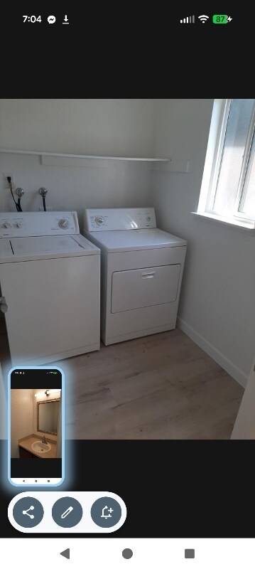 Property Id: 2299977 Large bright end unit. In unit laundry room. Master will accommodate a king, and has a walk-in closet and a mirrored vanity. Small patio for barbecues. Storage unit and two parking spaces beside apartment.