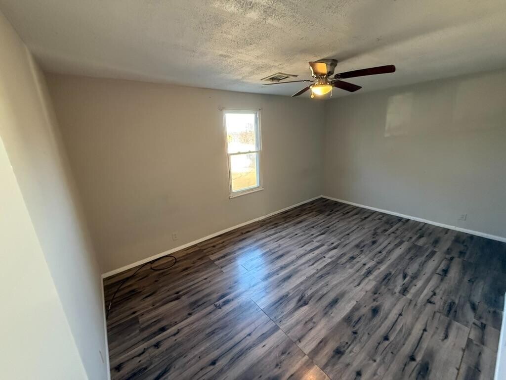 Beautiful home that's had lots of upgrades over the past couple of years. Upon entering the front door, you're greeted by the massive open main living area. To the right is the dining room which stems directly off the kitchen which has the following appliances included... Fridge (not pictured), stove/oven, and dishwasher. Further down past the kitchen is a dedicated laundry area with beautiful tile flooring and lots of shelving space. This can also double as a pantry and is where the back door is located. On the other side of the house is your master and the other 2 bedrooms as well as the full bath. This house is also equipped with central heating/air and was just freshly painted! Outside, you will enjoy the convenient off street parking with your own driveway as well as a spacious backyard.