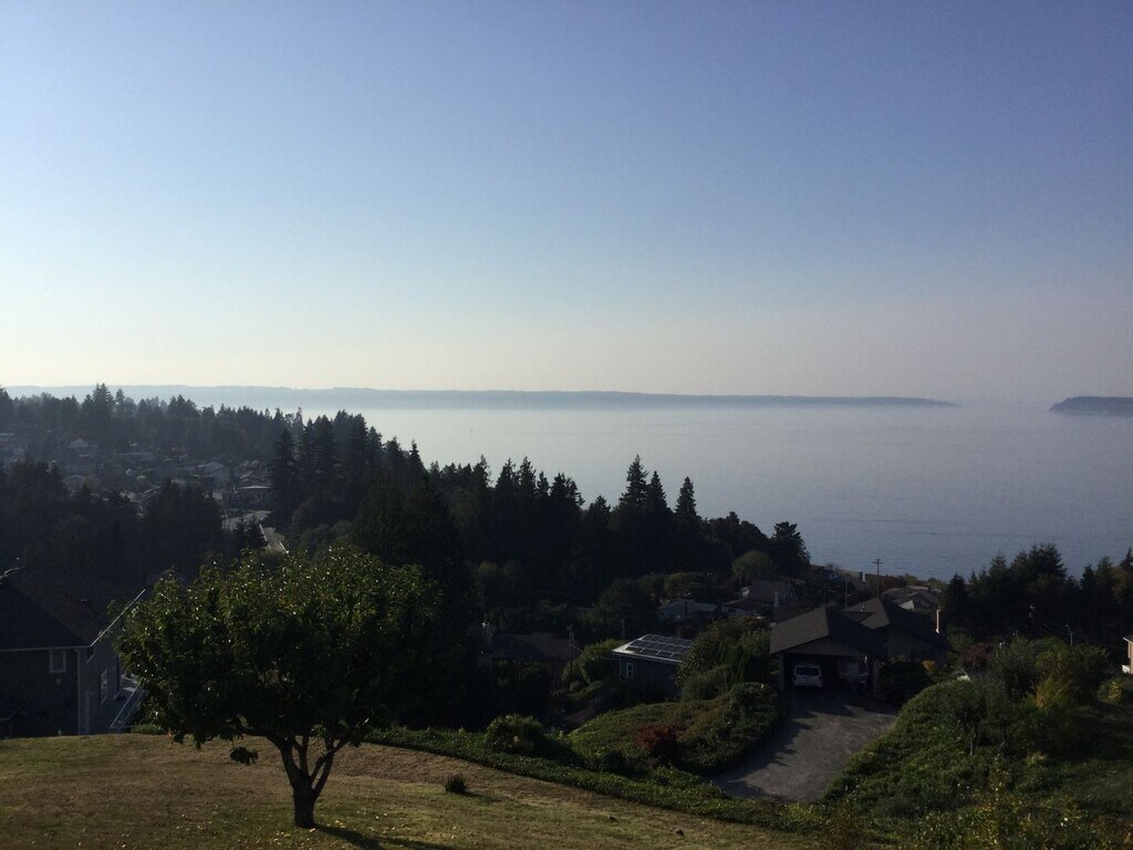 Soak in sweeping, panoramic views from nearly every room of this beautifully updated 4-bedroom, 2-bath home. Gaze out over Puget Sound, the Olympic Mountains, and Whidbey Island while enjoying unforgettable sunsets night after night. Thoughtfully designed for modern living, this home offers an ideal work-from-home setup without sacrificing comfort or style. The gourmet kitchen is a true showstopper, featuring stainless steel appliances, a gas range, quartz countertops, and soft-close cabinetry—perfect for everyday living and entertaining alike. Stylish vinyl plank flooring flows throughout, complemented by two cozy gas fireplaces that add warmth and ambiance. Upstairs, the open living and dining areas extend seamlessly onto a spacious view deck, ideal for morning coffee or evening gatherings. Three bedrooms are located on the upper level, with a private fourth bedroom downstairs. The lower-level family room opens to a large patio and secluded yard, creating an inviting space for outdoor entertaining or relaxation. Additional highlights include an attached two-car garage, generous storage, a dedicated workspace, and a heat pump for year-round comfort. Landscaping is included for easy living. No smoking and no pets. KIO/PTS/CS
