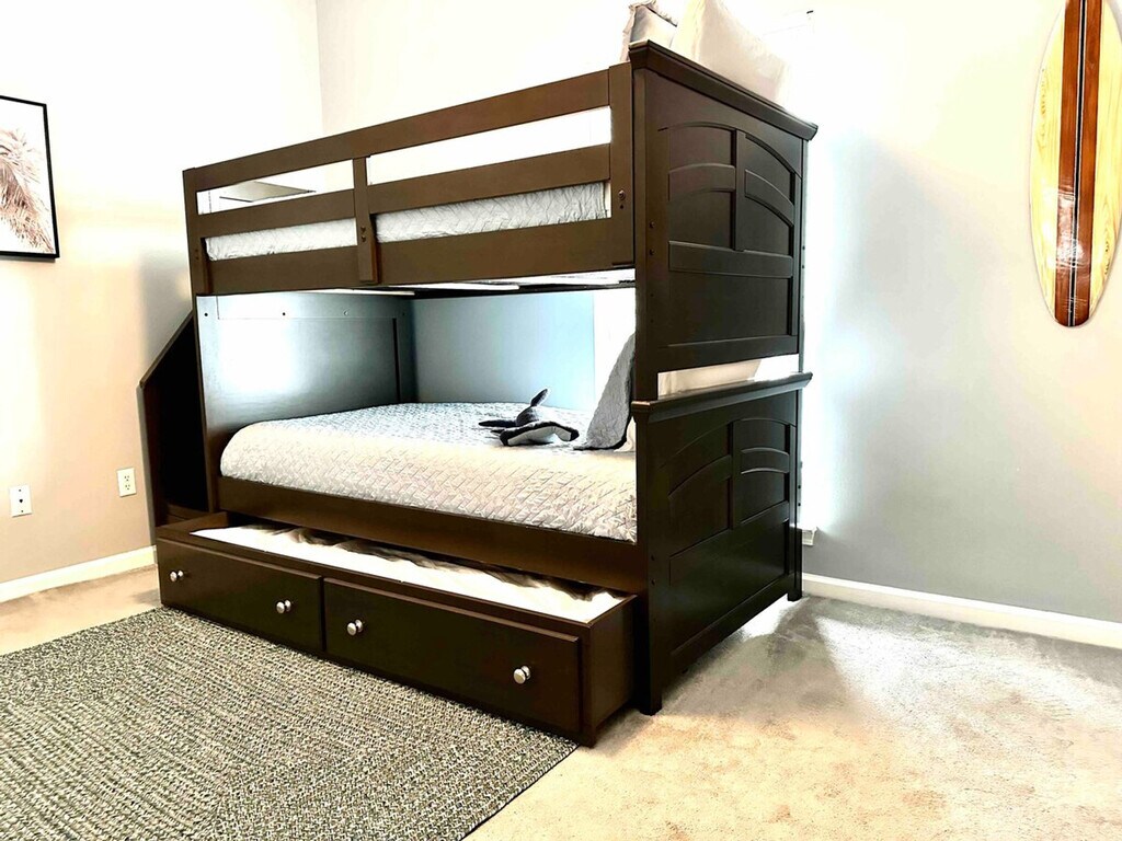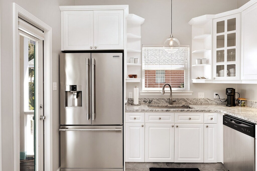 Feel at home in Sunsail Cottage, a gorgeous, coastal modern-styled 3-bedroom home nestled in a quaint neighborhood in the heart of Crystal Beach. This home accommodates up to 8 guests and is perfect for two small families, a couples trip, or a friends getaway. The open-air layout features a comfortable sectional, a Smart TV with Hulu Live, and a reading nook with two snug accent chairs. The fully equipped kitchen includes a large fridge with on-demand water and ice, stove, microwave, dishwasher, dishes, cookware, silverware, standard coffee maker, Nespresso coffee maker, Keurig, Crockpot, blender, toaster, and even children's cutlery and dinnerware. The breakfast bar has three stools, and the dining area seats 6. A full-sized washer and dryer are conveniently located in the full bathroom. Enjoy the wraparound porch with plenty of seating and a coded keyless entry. Pool heating is available for an additional fee, inquire for pricing. This home is pet friendly with a $200 pet fee. Located in the heart of Destin, this home is within 3 short blocks of the beautiful sugar sand beaches and has easy access to Highway 98 for local restaurants, shopping, and activities. There is parking for up to two vehicles, plus a six-passenger golf cart. RVs, box trucks, trailers, or watercrafts are not permitted. Check-in is at 4:00 PM CST and check-out is at 10:00 AM CST. A maximum of 2 house-trained dogs are permitted with a $200 non-refundable pet fee due before check-in. Emotional Support Animals (ESAs) are subject to the pet fee; only ADA-registered service animals are exempt. Guests are expected to clean up after their pets, and an additional $50 fee may apply for excess cleanup. [SI]
