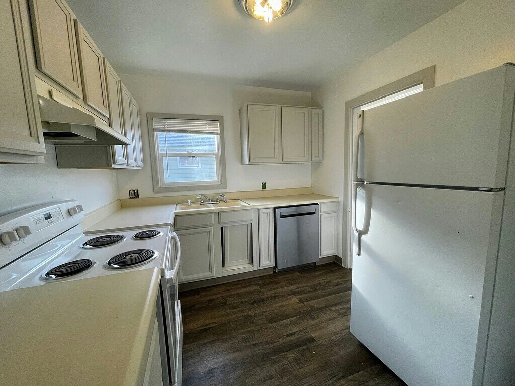 This lovely two-bedroom, one-bathroom property features an open living room with an adjacent dining area and a kitchen with a stove, refrigerator, and dishwasher. The house has brand-new carpet in the bedrooms and LVP flooring in the dining room and living room. The bathroom has been exquisitely renovated with new finishes, an upgraded vanity, and a tile shower. The enclosed porch with the laundry hook-ups is directly off the kitchen. The home features a fenced back yard. The furnace and additional, partially carpeted storage space are located in the basement. Electric garage door opener for a detached single-car garage.