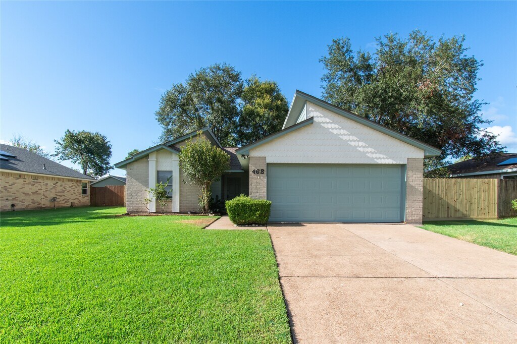 Step into elegance at 462 Capehill Dr,Houston,TX 77598. As you enter,soaring vaulted ceilings create a grand sense of space,complemented by luxury vinyl plank floors that flow seamlessly throughout the home. The chef-inspired kitchen boasts stunning butcher block countertops,sleek cabinetry,and modern fixtures that set the stage for both cooking and entertaining. Bathrooms shine with quartz-topped vanities and updated finishes,while new designer light fixtures add warmth and sophistication in every room. Outside,enjoy a private,enclosed backyard,perfect for relaxing or hosting gatherings. With a 2022 AC system ensuring comfort year-round,this residence blends timeless luxury with modern convenience—ready to welcome you home. MLS# 81038580
