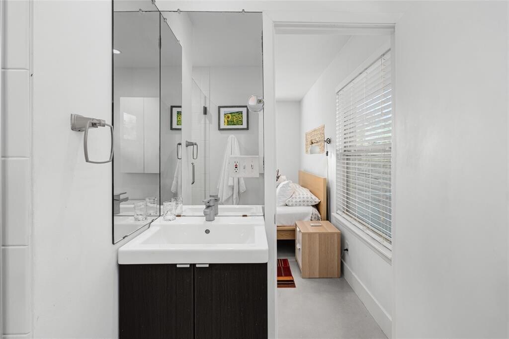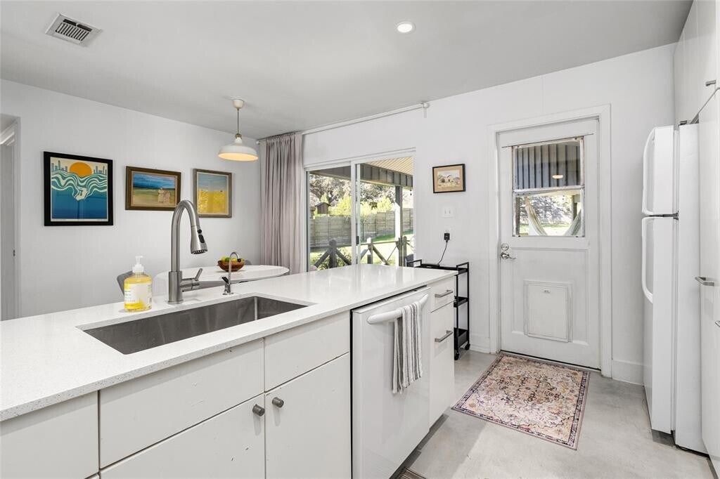 Available furnished or unfurnished for 12 months. Contemporary home with Exceptional Outdoor Living space. You’ll love this thoughtfully designed, open-concept home that truly lets the outdoors in. This meticulously maintained 3-bedroom, 2-bath home offers comfort, style, and seamless indoor–outdoor living. The floor plan flows effortlessly to the outdoor living spaces, making it ideal for entertaining or everyday enjoyment. Situated on a large, shaded corner lot, the property is fully fenced and irrigated, with raised garden beds perfect for growing your own vegetables. Enjoy over 300 square feet of outdoor living, including a covered porch with a ceiling fan, a dining table, an outdoor grill, and a private, shaded backyard. A storage building connected by a breezeway provides additional storage space for bikes, tools, and toys. The laundry closet is located off the storage room with a new stackable washer-dryer. The open kitchen features quartz countertops, a new gas range and built-in microwave, and a filtered water tap. The 3rd bedroom can also serve as a light-filled home office with a built-in bookcase, high-speed fiber internet, and a closet, ideal for remote work. The primary bedroom features two closets and an en suite bath. New windows throughout the home provide energy efficiency and expansive views of the beautiful yard. Pet-friendly for approved dogs, with a doggie door leading to the securely fenced backyard. Bi-weekly lawn care is included in the monthly rent. Prime central location off S. 1st, with freeway access in under one minute. Just 10 minutes to downtown Austin and the airport. Please review the attached document for pre-screening requirements. Owner/Agent