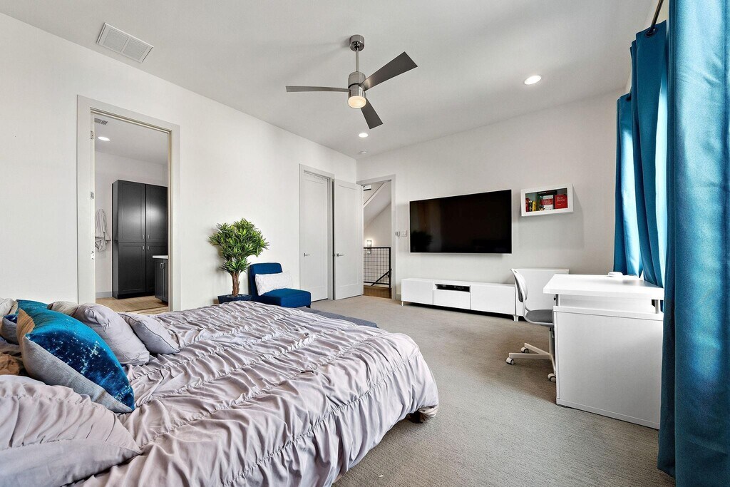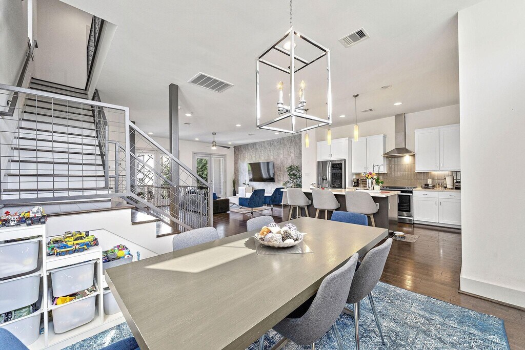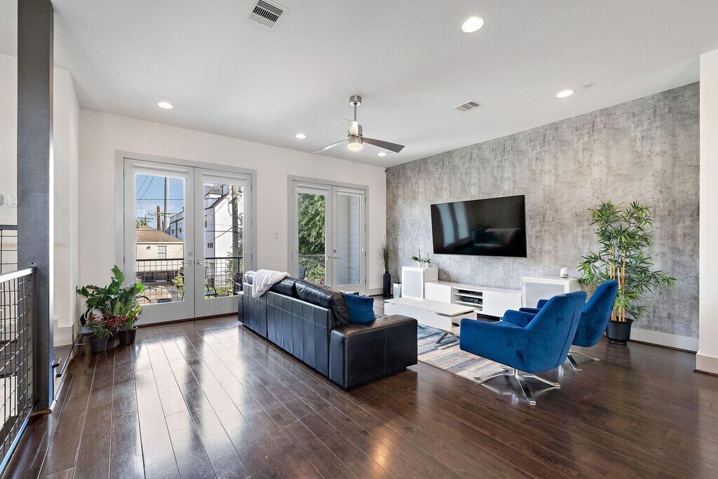 Welcome to 4621 Chartres St #C,a beautiful contemporary home offering 3 bedrooms,3.5 baths,and a private rooftop terrace with breathtaking Houston skyline views. The second-floor living area features elegant wood flooring,abundant natural light,and a private balcony,creating an inviting space for everyday living and entertaining. The stylish kitchen is equipped with Quartz countertops,built-in stainless steel appliances,a formal dining area,breakfast bar,and a dry bar with a wine fridge—perfect for hosting friends and family. The spacious primary suite easily accommodates king-sized furniture with room for a sitting area and includes a must-see spa-like bath. Each secondary bedroom is generously sized with its own private bath for added comfort and privacy. End your evenings on the fourth-floor terrace enjoying stunning skyline views and unforgettable Texas sunsets. Only MINUTES from downtown,Montrose,Med Center,UoH,etc! MLS# 15043912