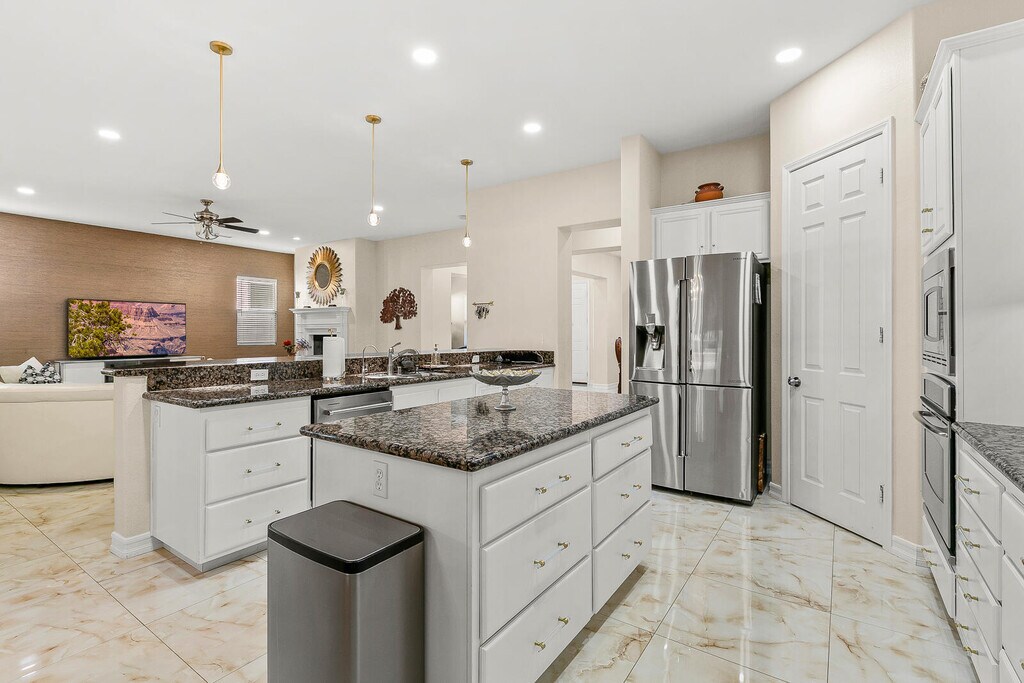 Available for lease in one of North La Quinta's most desirable neighborhoods,this beautifully upgraded home offers exceptional space,flexibility,and comfort. Featuring a rare dual-kitchen layout,the property is ideal for multigenerational living,extended guests,entertaining,catering,or those who simply love to cook. The main kitchen is custom designed featuring a convection oven,extensive cabinetry,and abundant storage,while the second full kitchen provides added versatility rarely found in the market. The spacious floor plan includes formal living and dining rooms,a bright open great room,high ceilings,and multiple flex spaces that can be used as offices,gym,hobby rooms,or guest areas. A private office with its own exterior entrance is perfect for working from home or a private studio setup. Upgrades throughout the home include designer finishes,upgraded flooring,and thoughtful details that enhance both style and function. Outside,enjoy inviting courtyard areas,paver patios,mature landscaping,and fruit trees that create a peaceful setting for year-round outdoor living. Dual air conditioning systems provide efficient comfort. Conveniently located near parks,walking paths,golf,shopping,dining,Old Town La Quinta,and highly regarded Desert Sands USD schools. A rare lease opportunity offering space,quality,and an exceptional North La Quinta location. MLS # 219147004