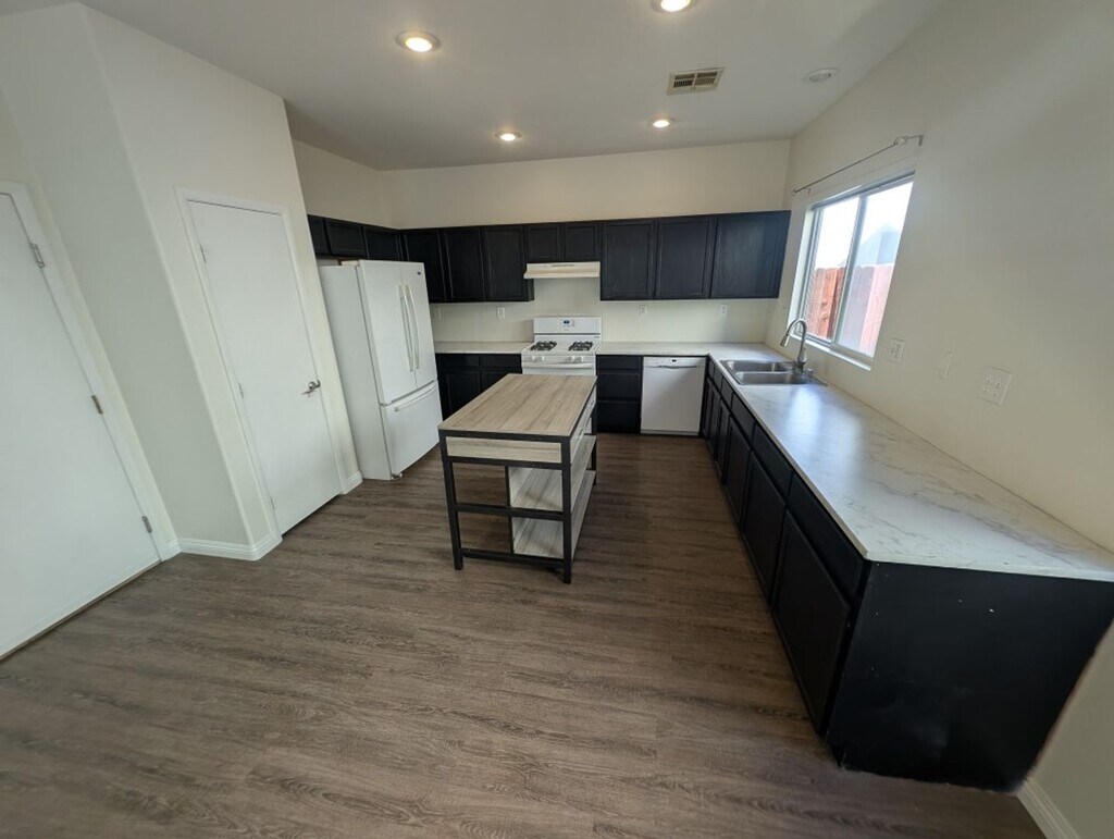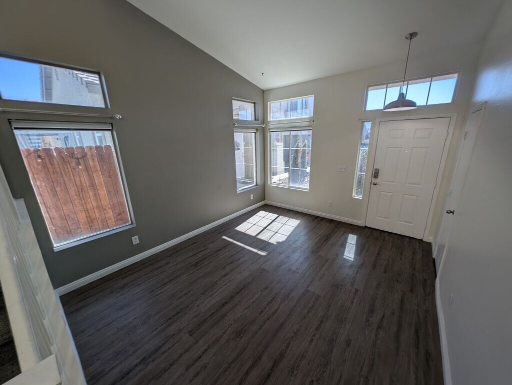 This beautiful home features an open-concept layout with vaulted ceilings, wood-look flooring, and a gourmet kitchen complete with espresso cabinetry and built-in appliances. The upstairs primary suite includes a walk-in closet and dual-sink bathroom. Enjoy a private backyard oasis with artificial turf and a covered patio, ideal for relaxing or entertaining. A two-car garage adds convenience. Located near top-rated schools, parks, dining, shopping, and easy highway access.