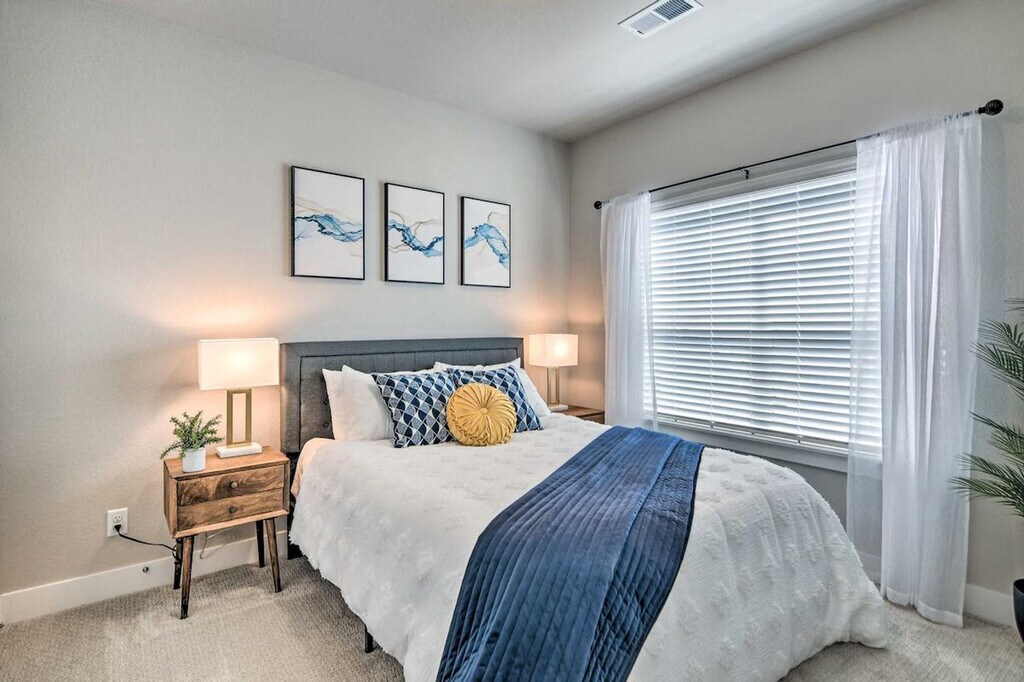 Feel at home in this upscale 2-bedroom, 2-bathroom getaway in Loveland, Colorado, highlighted by its proximity to popular attractions and outdoor adventures. Step-free access is available via elevator. This apartment features smart TVs with cable, a fireplace, a dining table, a breakfast bar, and a fully equipped kitchen with cooking basics, dishware, flatware, stainless steel appliances, a dishwasher, a stove/oven, a microwave, a coffee maker and grinder, a blender, a slow cooker, a toaster, and spices. Linens, towels, complimentary toiletries, central air conditioning, ceiling fans, an iron, an ironing board, clothes hangers, a hair dryer, trash bags, and paper towels are provided. Guests have access to a community clubhouse and a fitness center. This apartment includes a designated garage spot for one vehicle and access to a community parking lot for two vehicles, RV/trailer parking, and free street parking. This apartment is pet-friendly with a $100 fee, plus fees and taxes. When you’re not out hiking or perusing Old Town hotspots, you can relax in style. A private balcony with patio furniture and bicycles are available for your enjoyment. Events, parties, or large gatherings are not allowed. A photo ID may be required upon check-in. Includes a laptop-friendly work area. [SI]