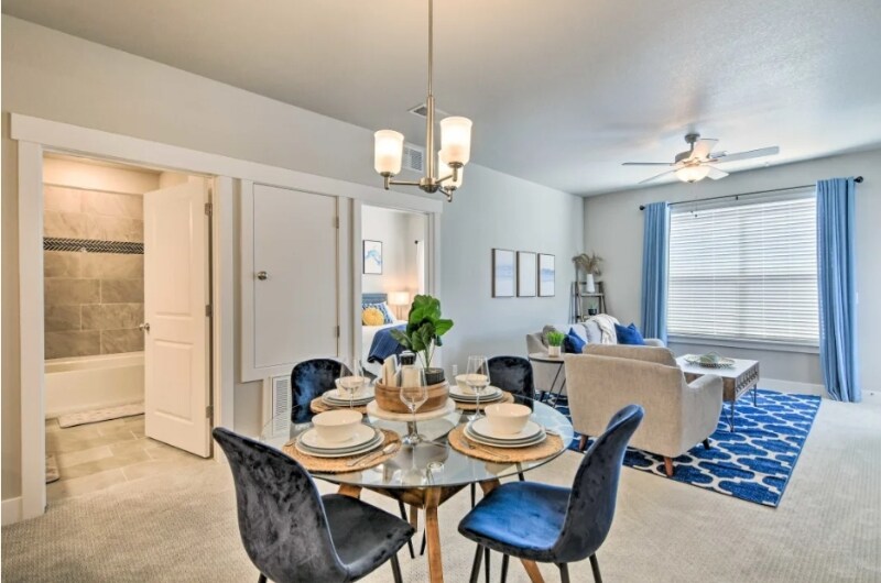 Property Id: 1020462 Highlighted by its proximity to popular attractions and outdoor adventure, this upscale getaway is perfect for couples and small groups to experience the best of Loveland, Colorado! This 2-bedroom, 2-bathroom vacation rental features access to a community clubhouse and a fitness center, as well as a private balcony and essentials like free WiFi and a fully equipped kitchen. When you’re not out hiking or perusing Old Town hotspots, you can relax in style with Smart TVs and a cozy fireplace.