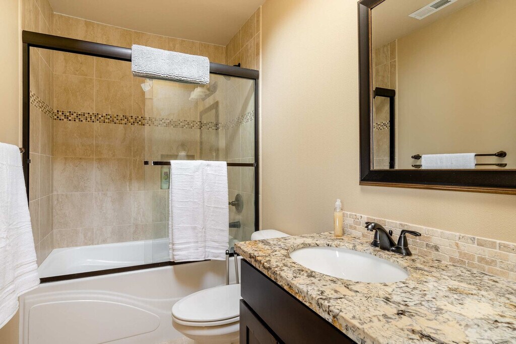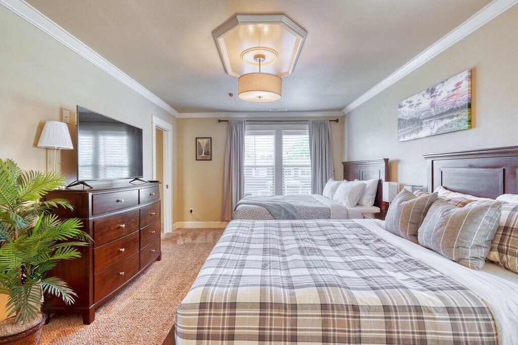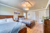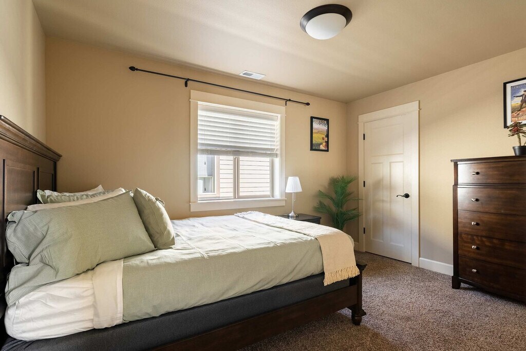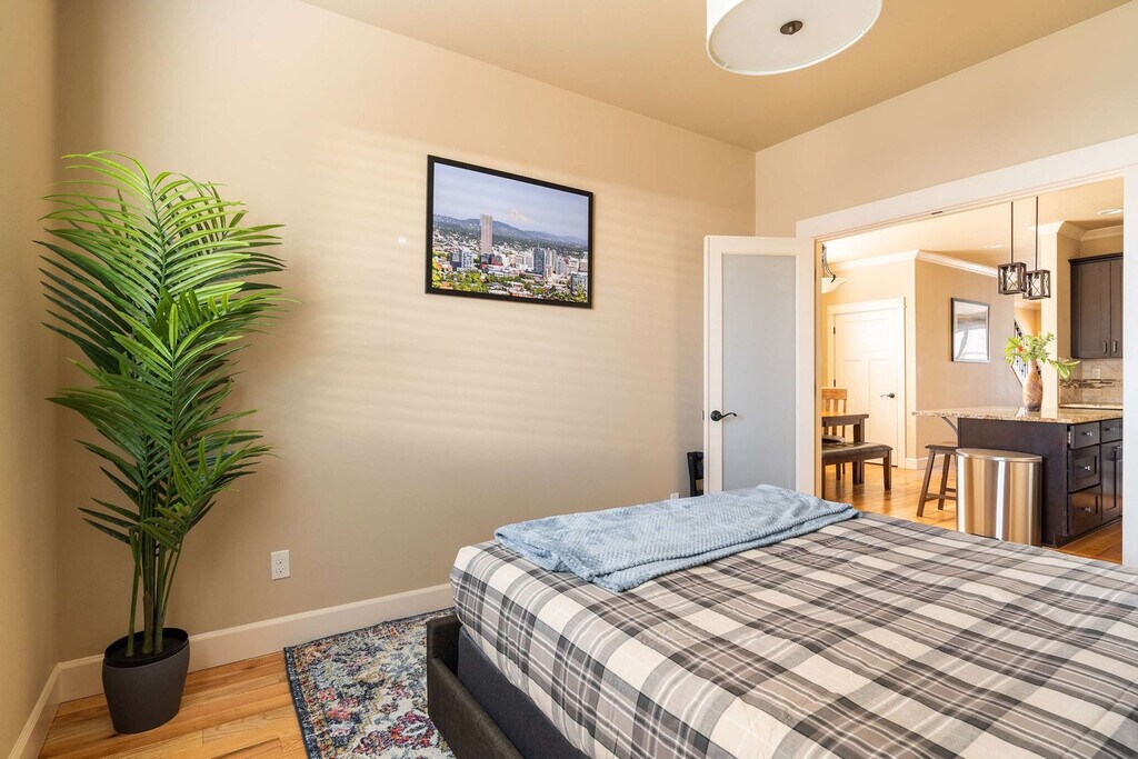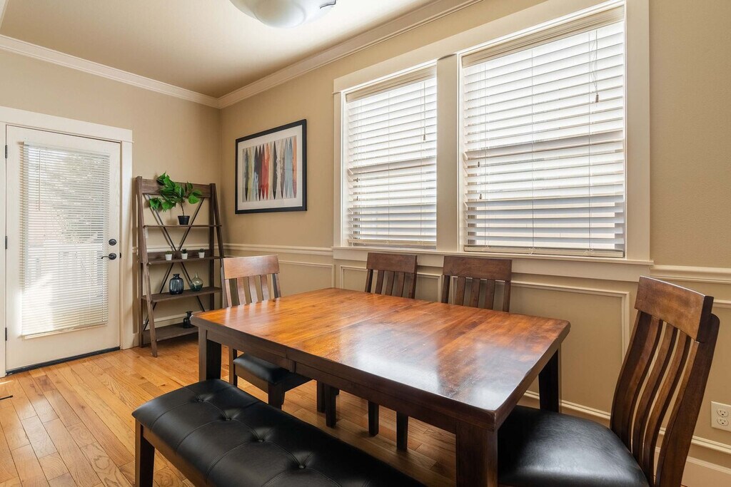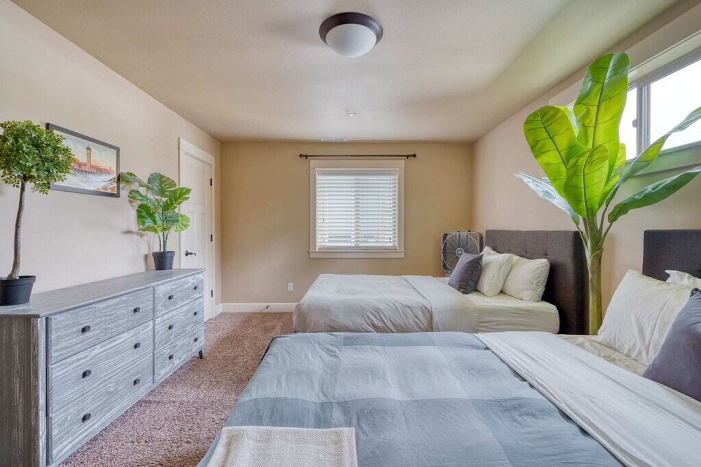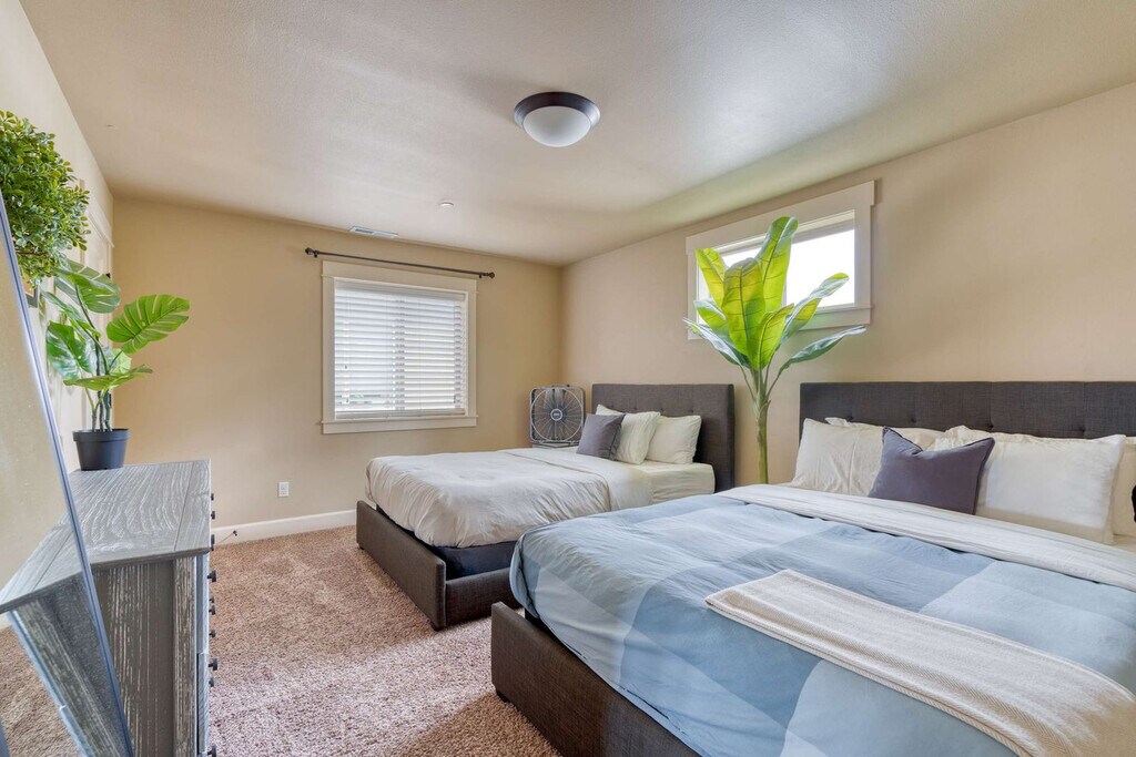 Welcome to The Garfield Getaway, a luxurious and modern 4-bedroom, 3-bathroom home with a spacious backyard. This 2000 sq ft residence features stainless steel appliances and a large in-unit washer and dryer. Located in NE Portland, steps from parks, food carts, and bars, it is close to the Alberta Arts District, Historic Mississippi Ave, and the Pearl District. PDX airport is just a 15-minute drive away, making it easy to feel at home while enjoying the best of Portland. This brand-new, beautifully remodeled 5-bedroom, 3-bathroom home in NE Portland boasts a walk score of 93. Designed with luxury and comfort in mind, the 2000 sq ft space features stainless steel appliances, mosaic-tiled bathrooms, and six queen beds with down comforters, duvets, and large pillows. The kitchen includes quartz countertops, two bar stools, and a large table seating up to eight, along with a single-serve coffee machine. The living room offers a smart TV with Netflix and high-speed WiFi. Additional amenities include heating, air conditioning, and a gas fireplace. Free parking is available on both sides of the street, with room for one vehicle in the driveway. A short flight of stairs leads to the entrance, which may be a consideration for those with accessibility issues. Nestled in the heart of the Historic Irvington Neighborhood, this centrally located area offers easy access to all that Portland has to offer. With a high walk score of 93, parks, restaurants, grocery stores, and shopping are all within close proximity. Irving Park provides various recreational activities, and the neighborhood is perfectly situated between the Pearl District, Mississippi Avenue District, and Alberta Arts District. A short commute takes you to Downtown Portland or the Moda Center. Quiet hours are between 22:00 and 8:00. The home includes personal touches like local books, board games, and an interactive map for guests to share where they're from, enhancing the feeling of being at home. Special 'Work-From-Home' kits are available upon request, providing a dedicated workspace for business travelers. [SI]
