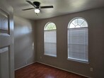 1.5-Story Corner Lot Home Near the Lake! Just a short walk from the lake, this 1.5-story home sits on an oversized corner lot featuring a huge backyard and a covered patio, perfect for entertaining friends and family. The bright, open floor plan includes a kitchen overlooking a cozy living area with a gas-log fireplace. An upstairs living area is ideal for a playroom or media room. The home offers three bedrooms, a study with French doors, and a formal dining room.