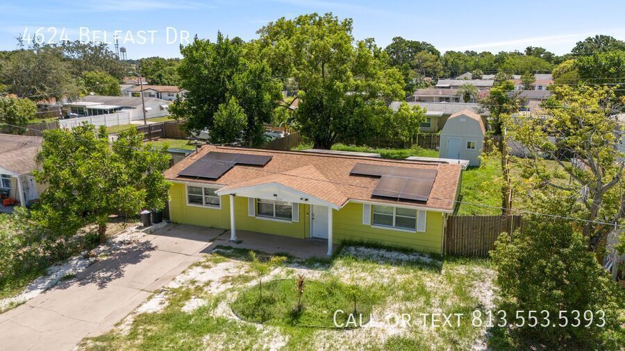 Welcome to this beautifully updated 3-bedroom, 2-bathroom home that offers not only style and efficiency but also a versatile bonus room in the backyard. Set inside a coded shed with electricity, this extra space is large enough to fit a queen-size bed and comes with a portable AC, making it ideal for a teenager's room or as a guest suite, private office, studio, hobby retreat. Inside the main home, you’ll love the thoughtfully renovated kitchen featuring stone countertops, stainless steel appliances, and ample cabinetry. The open layout connects seamlessly to the living areas, creating a warm and inviting space filled with natural light. Step outside to enjoy the spacious yard, perfect for relaxing, gardening, or entertaining friends and family. With solar panels already in place, you’ll also enjoy long-term energy savings. Ideally situated in the heart of New Port Richey, you’ll be just minutes from Sims Park, Robert K. Rees Memorial Park, the Cotee River, shopping, dining, and beautiful Gulf beaches. Additionally, you'll have convenient access to major highways like US-19 and State Road 54, providing easy commuting options. Nearby shopping centers include the Gulf View Square Mall, offering a variety of retail stores and dining options. For education, Gulf High School is within close proximity, and medical needs are served by the Regional Medical Center Bayonet Point. As a resident, you’ll benefit from Graystone’s Resident Benefits Package for an additional $60 per month, which includes liability insurance, credit building through timely rent payments, identity theft protection, HVAC air filter delivery, move-in concierge service, and access to a rewards program. Please note: The photos are staged for illustration purposes only ans it highlights how the space can be used. The property will be delivered unfurnished. Property is move-in ready and full of unique features. Schedule your self-showing today! None