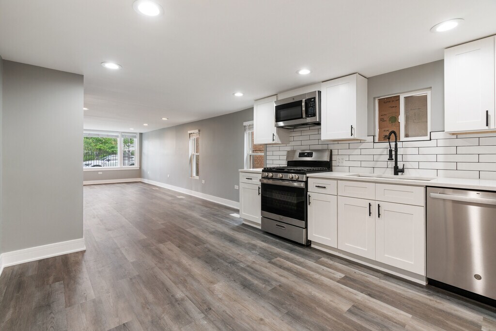 This renovated 3 bedroom 1 bath condo is a true gem located on a charming tree-lined street in Albany Park,a vibrant neighborhood celebrated for its cultural diversity,thriving local dining scene,walkable streets,and convenient access to top-rated schools,parks,and public transit. This modern ground floor unit only has a single step down to enter. The kitchen was recently redone with all stainless steel appliances,even a dishwasher! Also included is a private washer and dryer in the unit. Garage parking available for $200/month with large storage area. 2 pet max with combined weight under 50lbs. Water is included in the rent,tenant pays gas/electric/internet. Application fee $100 per person. One time move in fee of $1100. MLS# MRD12523180 Based on information submitted to the MLS GRID as of [see last changed date above]. All data is obtained from various sources and may not have been verified by broker or MLS GRID. Supplied Open House Information is subject to change without notice. All information should be independently reviewed and verified for accuracy. Properties may or may not be listed by the office/agent presenting the information. Some IDX listings have been excluded from this website. Prices displayed on all Sold listings are the Last Known Listing Price and may not be the actual selling price.