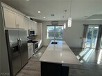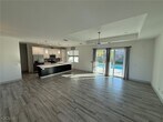 This 2022 three bedroom,two bathroom property features hurricane impact doors and windows. Tile in the main areas and carpet in the bedrooms. An open floorplan with ample space for entertainment. The kitchen features wooden cabinetry,a kitchen island,as well as all Stainless Steel Appliances. The primary bedroom is located on the right side of the house,it features his & her closets,dual sinks,a separate toilet and a modern walk in shower with glass shower wall. The two guest bedrooms are located on the opposite side of the house and they share a bathroom that is located between the two bedrooms. The guest bathroom features a tub/shower and a sink. There is ample space on the pavered lanai deck which also features a large pool cage. The swimming pool is electrically heated and can be used year round. The backyard is also fenced in which makes it very private.