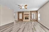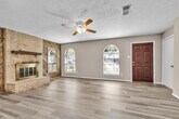Peyo Rubio3-bedroom, 2-bath single-story home in Spring, TX with attached 2-car garage and fenced backyard. Living room features a brick fireplace, arched front windows, and wood-look flooring. Kitchen includes white cabinetry, tile backsplash, electric range, dishwasher, and breakfast area with bay window. Primary suite offers private bath with tub/shower combo. Covered rear patio with pergola frame and fully fenced yard provide outdoor space for seating or pets. Central HVAC and mature trees on lot. Located near I-45, Hardy Toll Road, FM 1960, and Bush Intercontinental Airport. Convenient access to shopping, dining, and everyday services.