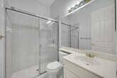 SPACIOUS 5/3 WITH 3 CAR GARAGE ON THE LAKE, ACCORDION SHUTTERS, NEW STAINLESS-STEEL APPLIANCES, GREAT LOCATION. A rated school. One bedroom and full bath on first floor. The HOA includes Cable & Internet with Hotwire, as well as alarm monitoring with ADT. Landscaping/Lawn Care is the tenant's responsibility. There is no credit check or approval process for rentals in the Windward Cove neighborhood. There is an Isles at Wellington tenant application for registration but no approval process. Two pets are allowed per home.