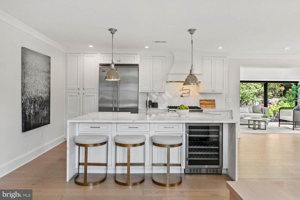 Andrew RiguzziContemporary Crestwood Home | 5 Bed | 3 Bath | 3,758 Sf | Large Fenced Backyard w/ Patio & Grill Station | 2-Car Garage & Driveway | Home: Full Gut Renovation in 2021, Large Open Living Layout, 41 Solar Panels, Custom Columns w/ Built-Ins for Designated Dining & Living Spaces, Additional Sunroom w/ Floor-to-Ceiling Windows & Access to Backyard Patio, Large Windows Throughout w/ Lots of Natural Light & Window Shades, Recessed LED Lighting Throughout w/ Lutron Caseta Wireless Smart Dimmer Switches, Nest Smart Thermostat, White Oak Wide Plank Flooring, 2 Full Size Washers & Dryers, Native Plant Garden, 2 Car Garage w/ Electric Car Charger | Kitchen: Massive Careara Marble Waterfall-Edge Island w/ Ample Storage & Seating for 4, Ample Built-In Cabinetry w/ Soft-Close Hardware, Tiled Backsplash, Viking Stainless Steel Appliances, French Door Refrigerator, 6-Burner Gas Range, Full-Size Viking Dishwasher, 24 Wine Fridge, Built-In Pot Filler, Polished Nickel Pulls | Baths: Frameless Glass Enclosed Shower w/ Bench & Double Sink Vanity w/ Storage in Primary Suite, Marble Topped Vanities w/ Storage, Marble Tiled Shower Walls & Floors, Kohler Toilets | Basement: Separate Private Entrance, Additional Family Room w/ Kitchenette & Beverage Fridge, Mud Room w/ Built-In Storage & Access to Garage, White Oak Flooring