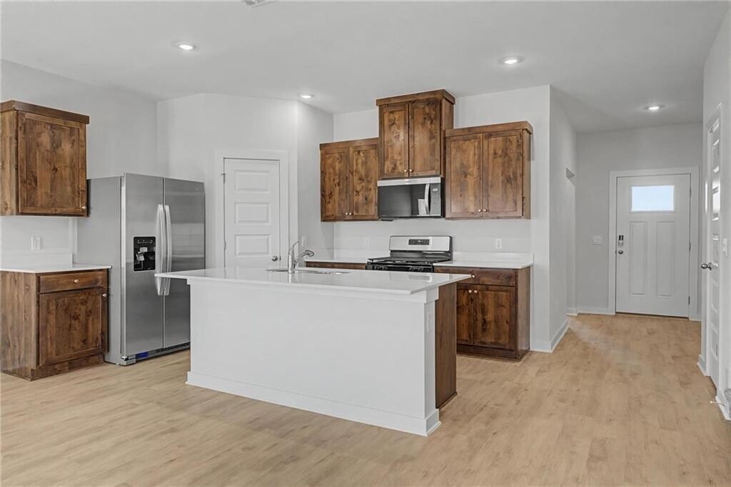 Move-in ready new construction in Fayetteville! This 4-bed, 3 full bath all-brick home offers a spacious split floor plan and open kitchen with quartz countertops and SS appliances. The primary suite on the main level features an oversized walk-in shower and generous closet space. Tons of storage throughout and great natural light. Upstairs there's a nice flex space perfect for a game room or home office. Refrigerator, washer, dryer, and 2-car garage included. Enjoy sunset views from this convenient Fayetteville location close to U of A, Owl Creek, John L. Colbert Middle School, and I-49. Also just minutes away from trails, eateries, schools, parks and lots more. MLS# 1336711