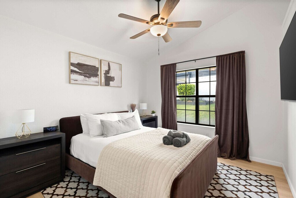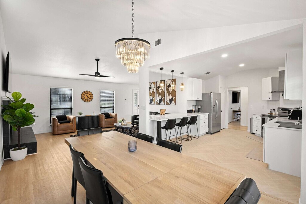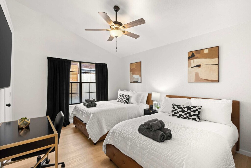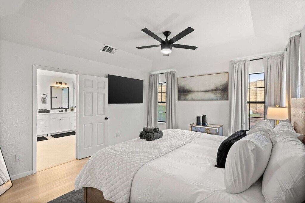 The advertised rate of $17,197/month is the lowest available price, based on a 30 day(s) stay with a move-in date of August 17, 2026. Rates vary depending on the duration of stay, season, and other parameters. For exact pricing and additional pricing components, please visit our website and enter your desired move-in and move-out dates. The rate is applicable when billed upfront; it can be higher if billed in multiple payments. Feel at home in this southern oasis, featuring 3 bedrooms and 2 bathrooms, perfect for accommodating groups of up to 8 guests. This beautiful home features a fully equipped chef’s kitchen with stainless steel appliances, including a fridge, freezer, stove, and oven, as well as all basic cooking essentials. The open-concept layout includes a dining area with a dinner table and seat settings for 6+, and a living room with comfortable couches, a rug, artwork, a coffee table, a flat-screen TV, and high-speed Wi-Fi. Each of the 3 furnished bedrooms offers plush mattresses, comfortable sheets, fluffy pillows, bedside tables, and TVs. Free parking is available to all guests. A laundry room is fully equipped with a washer and dryer. House-trained pets are welcome with a non-refundable pet fee of $150 per pet (maximum of 2 pets per stay). An additional nightly fee of $29 per night will be applied for each guest exceeding six. With plenty of sunshine, one of the biggest draws to Grand Prairie is the many fun and exciting things to do here. Nearby points of interest include Traders Village, Epic Waters Indoor Waterpark, Lone Star Park, and AT&T Stadium. For those interested in exploring Dallas, attractions include Mandalay Canal Walk at Las Colinas, Reunion Tower, the Perot Museum of Nature and Science, and The Sixth Floor Museum at Dealey Plaza. Smoking of any type is not allowed, and violations are subject to a $450 fine plus the cost to clean, deodorize, and repair damages. Check-in is at 4pm and check-out is at 10am. Only registered guests are allowed on the property. No street parking is allowed due to City Parking Regulations. The maximum number of cars allowed are 2 cars in the garage and 2 cars in the driveway. Registration Number: STR25-000181 [SI]