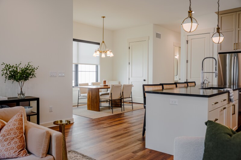 Property Id: 1781187 New construction! Apply now! 2,187 SF home. 3-BR, 2.5 BA two-level model. 1st floor MBR suite. Full basement. Main level 10' ceilings, 2nd level vaulted ceilings. Oversized windows. Roller shade window treatments standard. LVP main floors. Luxury carpet upstairs. 42” gas fireplace in main area. 4” LED recessed lights, dimmers. Custom full height kitchen cabinets. Soft close, dove-tail construction, spice racks, drawers, under cabinet lights. Pantry closet, large 4-seat island, quartz countertops, Kohler fixtures, and stainless GE appliances. Gas range, microwave, refrigerator, dishwasher, disposal. Dining area. Laundry cabinets, full-size front-loaded GE washer and dryer. Tile floor master bath, custom double vanity w/marble, tile/glass showers, bath surround. Kohler fixtures. Main level private porch, deck, plus second floor balcony w/glass panels. 2-car garage ready for EV, w/smart overhead opener, direct entry to boot room w/bench seats, coat hooks, closet, storage. Ample closets.