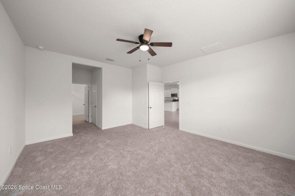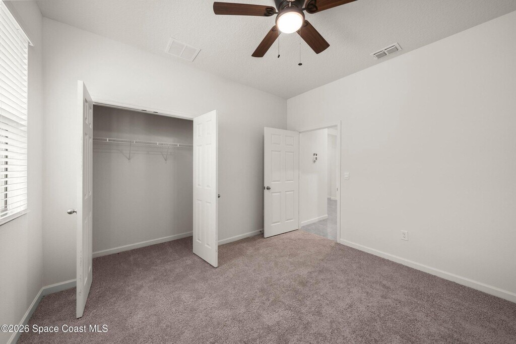 Welcome to this beautifully maintained,move-in ready home located in the sought-after gated community of Bayside Lakes. Built in 2022,this residence offers soaring ceilings and a bright,open-concept layout designed for modern living. The split floor plan provides three generously sized bedrooms on one wing,while the private primary suite is tucked away at the rear of the home for added privacy. The primary suite features dual walk-in closets and a spa-inspired en-suite with double vanities. Enjoy Florida living year-round from the expansive screened-in back porch overlooking the backyard. Bayside Lakes offers wide streets,winding sidewalks,and a community pool,creating a true neighborhood feel. This home is available April 1 and ready for its next owner. MLS # 1068443