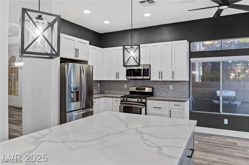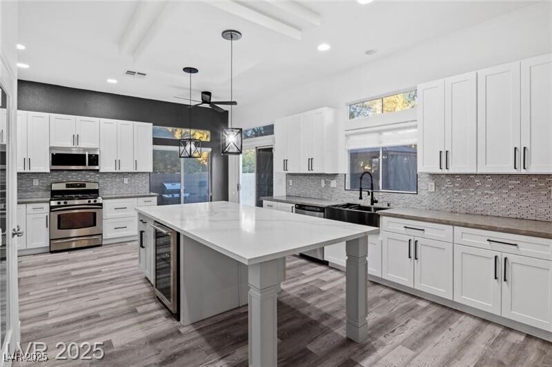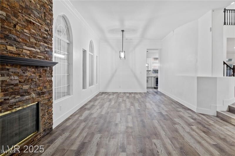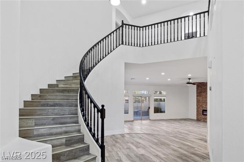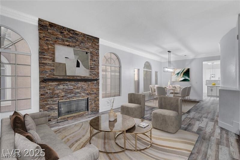 Stunning 2-Story Luxury Home in Guard-Gated Granada Hills! This beautifully upgraded 5-bedroom, 4.5-bathroom home features soaring ceilings, new luxury vinyl plank flooring, and a grand entry. The formal living/dining area includes a gas fireplace, while the chef’s kitchen boasts quartz countertops, a farmhouse sink, a large island with built-in spice rack and wine fridge, plus premium appliances. The open-concept great room includes a floor-to-ceiling feature wall and electric fireplace. All remodeled bathrooms feature quartz counters and new vanities. The oversized master suite includes a extra room and a spa-like ensuite with a freestanding tub, rain shower, and dual vanities. Outdoors, enjoy two sitting areas, a covered gazebo, and a 600+ sq. ft. pool/spa with waterfalls. This home offers the ultimate in luxury and comfort, in a prime Granada Hills location.