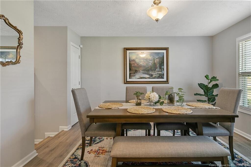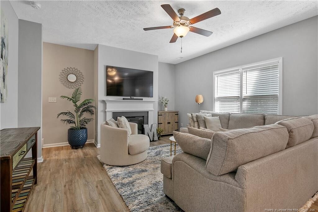 Welcome home to this spacious 3 bedroom, 2.5 bath property offering comfort, style, and convenience. The open floor plan features a bright family room, a dining area, and a gorgeous kitchen with granite countertops, stainless steel appliances, a large pantry, and an island perfect for casual dining or entertaining. Upstairs, you’ll find all bedrooms plus a large loft—ideal for a home office, playroom, or second living space. The primary suite includes dual vanities and a generous walk-in closet. The laundry room (with front-load washer and dryer included) and a large hall bath complete the upper level. Enjoy the outdoors with a screened-in porch, extended patio area with pergola, and a private wooded backdrop offering a peaceful retreat. This home combines modern finishes with a functional layout—ready for you to move in and enjoy! Quick commute to Fort Bragg, shopping and dining!