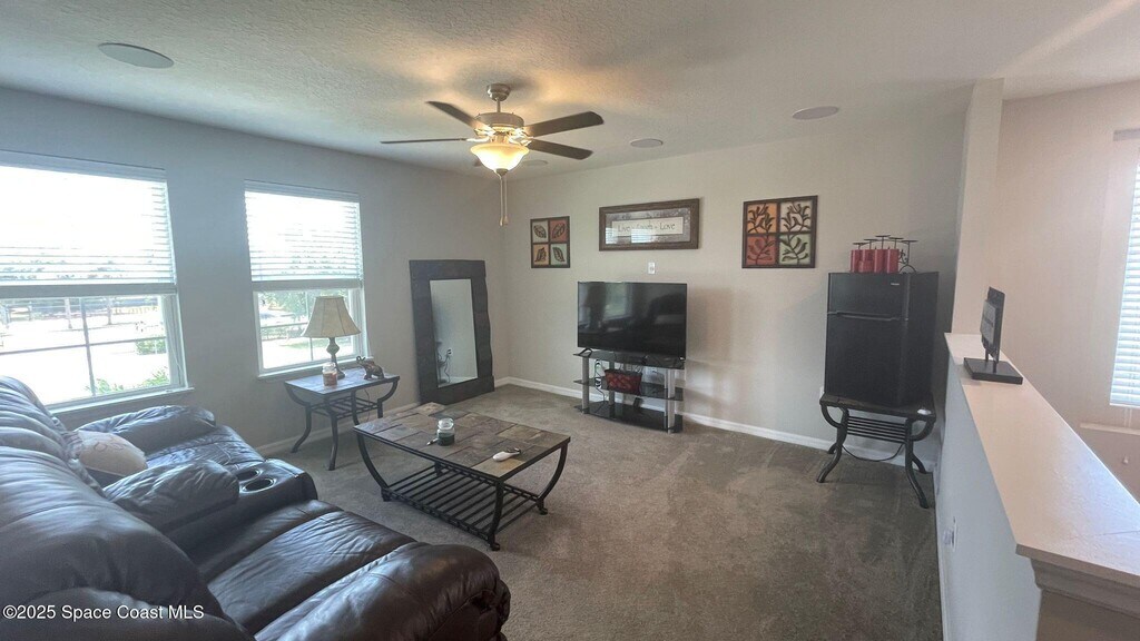 Come today to see this beautiful 2-story home in an excellent location in West Melbourne. It has a 2 car garage,covered patio,large kitchen area & dining room/family room combination. Upon entering the house,you will find an office/bedroom,with access to a full bathroom on the first floor. The full kitchen includes all stainless appliances,upgraded 42-inch cabinets,quartz countertops,and a long kitchen island for extra space. On the second floor,you will find a spacious loft,3 bedrooms,2 baths,& laundry room with washer and dryer. The master bedroom has ample space for a king size bed,dressers,and sitting area. It comes complete with a walk-in closet and the master bath has double sinks and tall tiled shower. The floors are tile and carpet throughout.