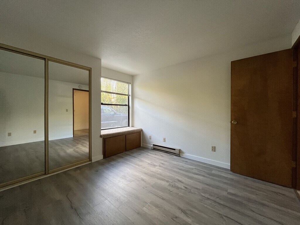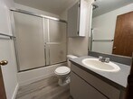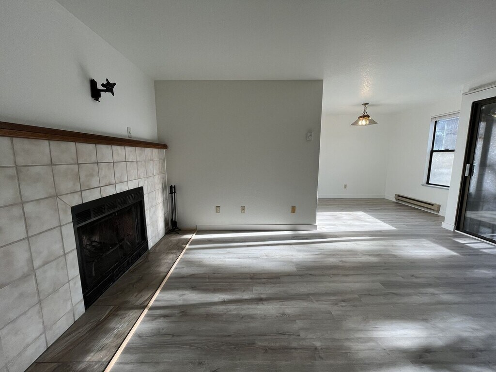 Welcome to this inviting two-bedroom, one-and-a-half-bathroom ground-floor apartment offering 906 square feet of comfortable living space. The home features wood-vinyl flooring throughout, creating a cohesive and modern feel in every room. The kitchen offers efficiency and functionality with a dual-sided layout and a walkway between the two prep areas. One side includes an electric oven, mounted microwave, and spacious refrigerator, while the opposite side features a dishwasher and a single-basin stainless steel sink positioned under a bright window. Cabinets and drawers line both sides, providing ample storage. Just beyond the kitchen is a dedicated dining area with a window that brings in natural light and offers plenty of space for hosting meals and gatherings. The living room is open, comfortable, and flexible, designed to accommodate various furniture layouts. A built-in fireplace serves as a focal point, adding character and warmth to the space. On the opposite side of the home, a conveniently located stackable washer and dryer sit near the main full bathroom. This bathroom includes a single vanity and a tub-shower combo with sliding glass doors for easy use and upkeep. The primary suite is bright and well-designed, featuring a spacious layout with mirrored sliding closet doors, a built-in bench with additional storage, and a large window. An attached half bathroom offers added convenience and privacy. The second bedroom also includes vinyl wood flooring, a mirrored closet door, and a built-in bench for extra seating or storage. Completing this home is a covered patio with additional exterior storage. The patio looks out toward surrounding trees and bushes, offering a peaceful place to relax and enjoy the outdoors. **Open Application Period 12/12/2025** Call or Text Our Leasing Agent to schedule a showing! English Speaking Spanish Speaking YouTube Link: Visit our website to apply and view other homes we have available! Do you need property management services? Maximize your income and cut your costs!