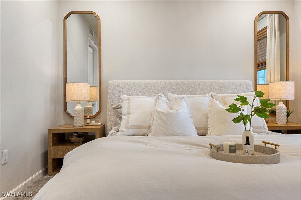Available For Annual Rental Now! Enjoy tranquil waterfront living with exceptional privacy,minimal traffic,and a prime location just steps from the resort-style amenities. This first-floor Delmar coach home offers 1,341 square feet of thoughtfully designed living space. The residence features two bedrooms,two full baths,and a one-car garage,along with an upgraded design package and beautifully curated interior finishes throughout. The open-concept layout is bright and welcoming,flowing effortlessly and living like a single-family home. The designer kitchen is a standout,showcasing white 42” shaker cabinetry,lightly veined quartz countertops,a glass tile backsplash,and a spacious island with seating for five to six—perfect for entertaining or casual dining. The kitchen opens to the expansive great room,where large sliding glass doors lead to a covered,screened lanai overlooking peaceful water views. The primary suite offers a relaxing retreat with a generous walk-in closet and a private bath featuring dual sinks and a glass-enclosed shower. The guest bedroom is thoughtfully positioned away from the primary suite for added privacy with easy access to the second full bath. Located in the Arboretum,a vibrant community within Naples’ Bayshore Arts District,residents enjoy close proximity to dining,shopping,the Botanical Garden,Fifth Avenue South,and Naples beaches! Community amenities include a resort-style pool and spa,fitness center,clubhouse,fire pit,grilling areas,and a dog park. This is a rare opportunity for an annual waterfront rental in one of Naples’ most exciting neighborhoods!