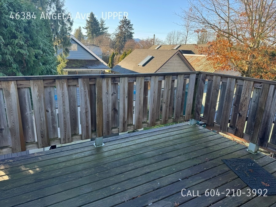 Pets: One Small Pet No Smoking Utilities: Included Available: Now One Year Lease Required Security Deposit: Half Month Rent Pet Deposit: Half Month Rent Clean and well-maintained upstairs home featuring 3 bedrooms and 1.5 bathrooms, offering a bright and functional living space. The unit is tidy, move-in ready, and includes use of the front yard for the tenant. All utilities are included except Wi-Fi. Please call Ace Property Management at - Ext-1 to book a viewing. Reference the address: “46384 Angela Ave - UPPER”