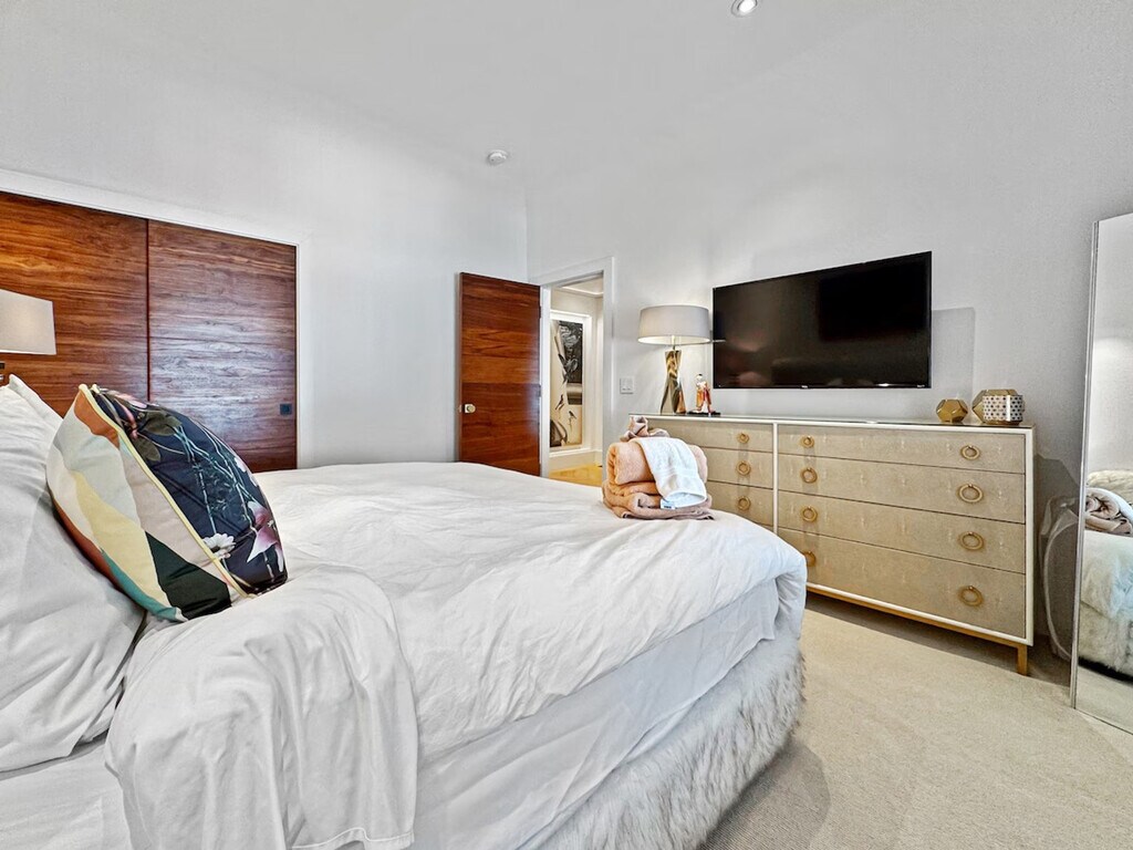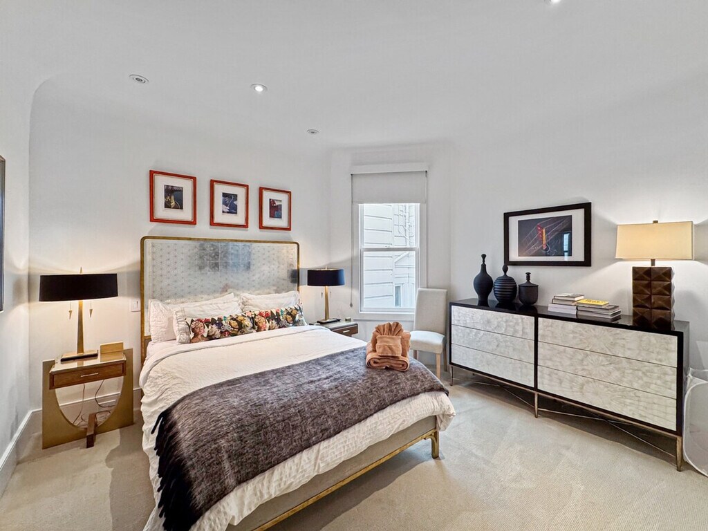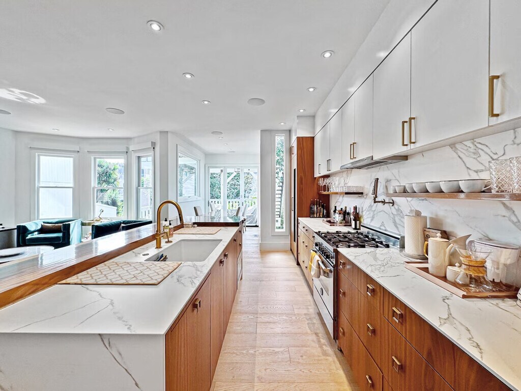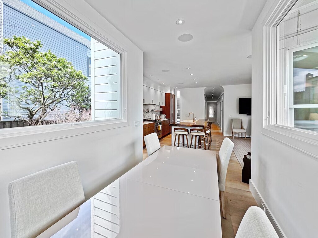 Experience the charm of a classic San Francisco Edwardian, newly renovated in 2018. This stunning apartment features an open-plan living room and kitchen, adorned with furnishings from Timothy Oulton and Sonder. Enjoy the south-facing exposure with La Cantina doors that open to a spectacular private deck, complete with heat on demand, and access to a beautifully lush backyard. Indoor parking for one car is included, along with an electric high-speed car charger. Feel at home with full access to this 3-bedroom, 1.5-bath apartment, which includes a private rear deck and a shared lush backyard. The apartment offers a cozy and efficient third bedroom with a lovely side garden view and good natural light, perfect for those who appreciate a unique space. Indoor parking for one car is included, with an electric high-speed car charger available. Conveniently located on the MUNI trolleybus line "33", this apartment provides easy access to public transportation. The front bedroom, featuring a king bed, is situated at the street, offering double-pane windows for sound protection. Light sleepers might prefer the queen bedroom for a quieter experience. The apartment is located on the MUNI trolleybus line "33", with the front bedroom (king bed) located at the street. Double-pane windows provide sound protection but light sleepers should consider sleeping in the queen bed room. The third bedroom is small, but cute and efficient, with a lovely side garden view and good natural light. Harry Potter would feel at home in this room (i.e. it's under the stairs hehe). [SI]