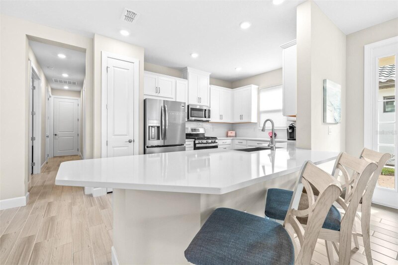 Property Id: 2192798 Don't miss this chance to own a nearly new, Mediterranean-inspired home in a gated 55+ community. Built just over a year ago, this upgraded home offers an open-concept layout with 9-foot ceilings, wood-look tile flooring, and tray ceilings in main areas. The gourmet kitchen features quartz countertops, designer backsplash, farmhouse sink, gas range, and high-end stainless appliances. The spacious primary suite includes a walk-in closet and spa-like bath with dual vanities and a glass-enclosed shower. A flex room with French doors serves as an office or third bedroom. Relax on the screened lanai with views of the landscaped backyard. Additional features: 8-foot doors, tankless water heater, water softener, and blackout shades. Enjoy resort-style amenities: clubhouse, pool, tennis, pickleball, café, fitness center, and more. HOA covers exterior maintenance, cable, and internet. Close to healthcare, shopping, dining, Tampa, and beaches.