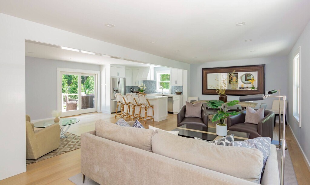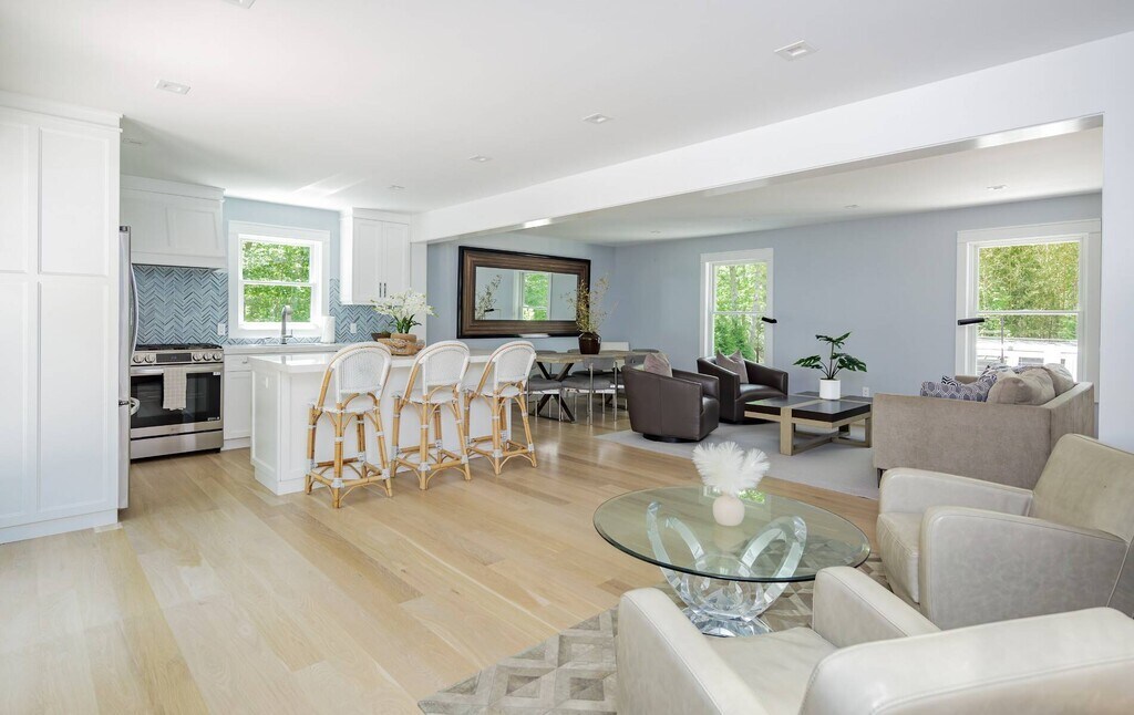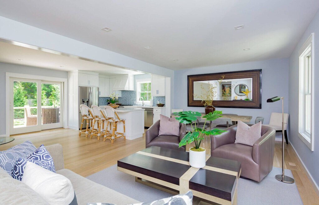 Set on a shy half acre and close to East Hampton Bay Beaches sits this 4 bedroom, 5 bath home, fully screened in for privacy with evergreen trees and room for pool. Completely renovated from the ground, up to the the metal roof, and using the highest quality materials and finishes including a brand new high efficiency propane HVAC system. The home has a great open floor plan with tons of natural light and beautiful hardwood floors. The finished lower level has radiant heat flooring throughout and includes a full bathroom, office, gym and living space with sliders leading out to a blue stone patio and heated gunite pool. Available for rent summer 2025. [[Rental Registration # 24-945]] EH RR #: 24-945 Rental Terms: August - Labor Day: $50,000 July: $45,000 Two Weeks: $20,000 Memorial Day - Labor Day: $95,000 July - Labor Day: $85,000 Other / Short Term - Year Round: $175,000