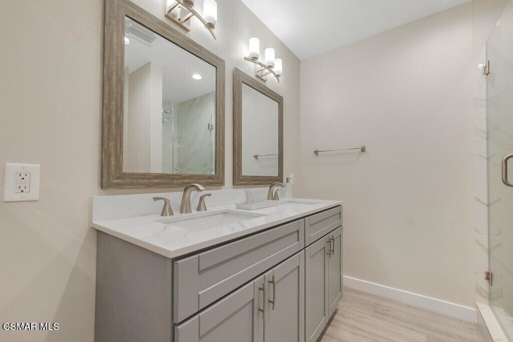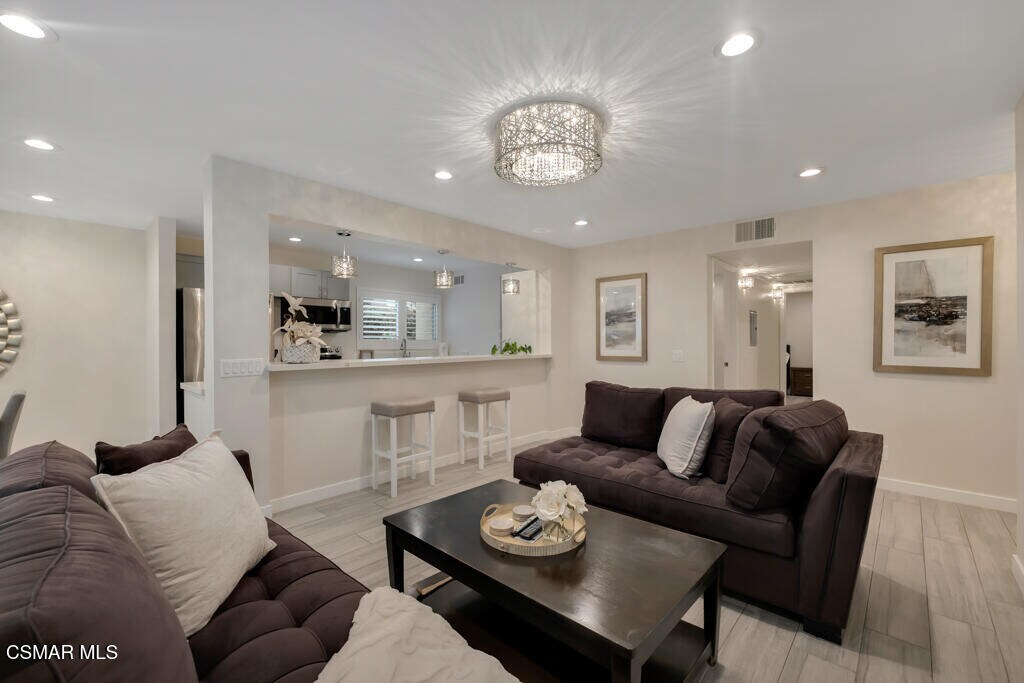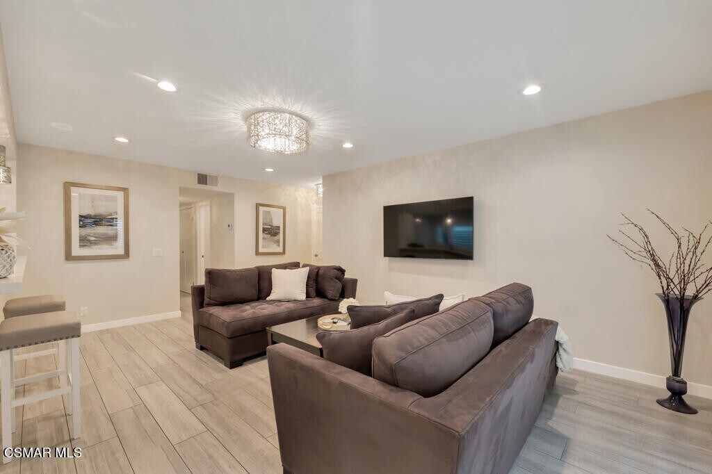 Step into effortless luxury in this beautifully renovated, ground-level corner condo designed for elevated living. Thoughtfully styled with designer finishes, the fully furnished, spacious two-bedroom, two-bath layout opens to a private patio, perfect for indoor-outdoor enjoyment.The remodeled kitchen features quartz countertops, newer appliances, and updated flooring, while newer windows and plantation shutters fill the home with natural light. Additional highlights include wood-look flooring, elegantly remodeled bathrooms, in-unit laundry, and two smart TVs, offering refined comfort and modern convenience.Residents enjoy resort-style amenities including a sparkling pool, fitness center, conference room, lush walking paths, and private key access to Calabasas Lake. With 24-hour on-site security, peace of mind comes standard. Ideally located near the lake, Saturday farmers market, and a wide selection of restaurants offering convenient takeout, the condo is also close to shopping at Warner Center, Trader Joe's, Ralphs, Erewhon, and Bristol Farms.