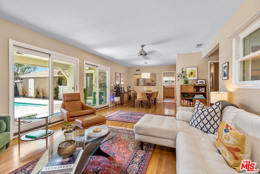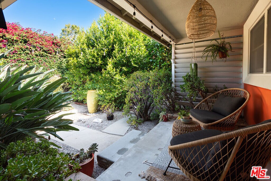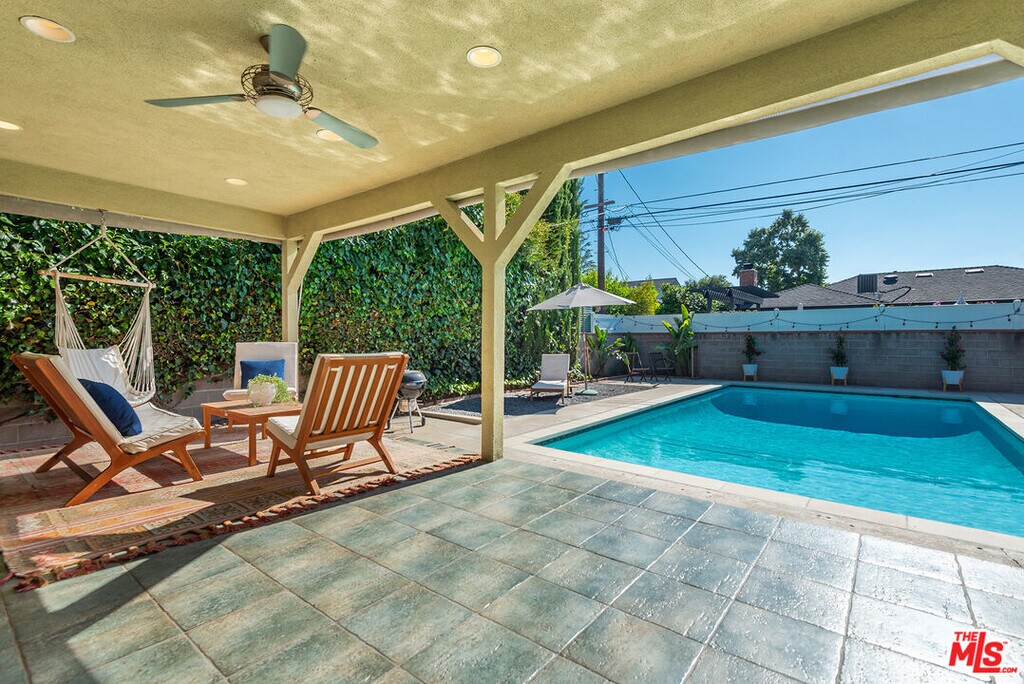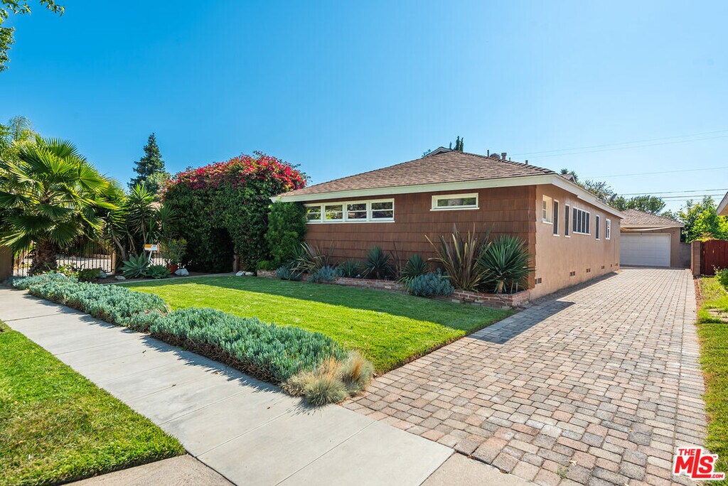 Welcome to this wonderful 3-bedroom, 2-bathroom home set on a lush landscaped lot. Step in through the beautiful bougainvillea-covered gate to your private court yard. The living room boasts wood floors, a fireplace, and a dining area, complemented by two sets of glass doors leading to the backyard. The remodeled kitchen features maple cabinets, updated stainless steal appliances, Caesarstone counters and a spacious center island with breakfast bar and storage amenities.The spacious primary bedroom provides dual closets and an updated bathroom with dual sinks and a soaking tub with a rain showerhead. The third bedroom, with its charming window seat, offers versatility as a den or additional bedroom. Outside, the private yard hosts a covered dining patio and a swimmer's pool, ideal for outdoor enjoyment. Don't miss the opportunity to experience the allure of this exceptional property firsthand. MLS# 26655693
