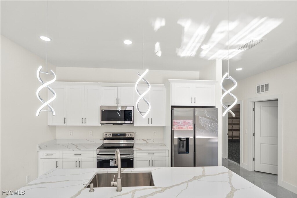 This newly constructed duplex features two identical units,each offering 3 bedrooms,2 bathrooms,and a 2-car garage,located in the growing Lehigh Acres area. Each unit provides 1,198 square feet of well-designed living space with a functional and modern layout. Both units come fully equipped with brand-new stainless-steel appliances,including a washer,dryer,microwave,refrigerator,dishwasher,and oven,making them completely move-in ready. Impact-resistant doors and windows are installed throughout for added safety,energy efficiency,and peace of mind. The interior showcases durable,large-format 24×24 porcelain tile flooring throughout,with elegant 24×48 porcelain tile on the shower walls for a clean,modern look that’s easy to maintain. This property is ideal for tenants seeking a spacious,low-maintenance home in a desirable and growing community,offering excellent comfort and long-term value.