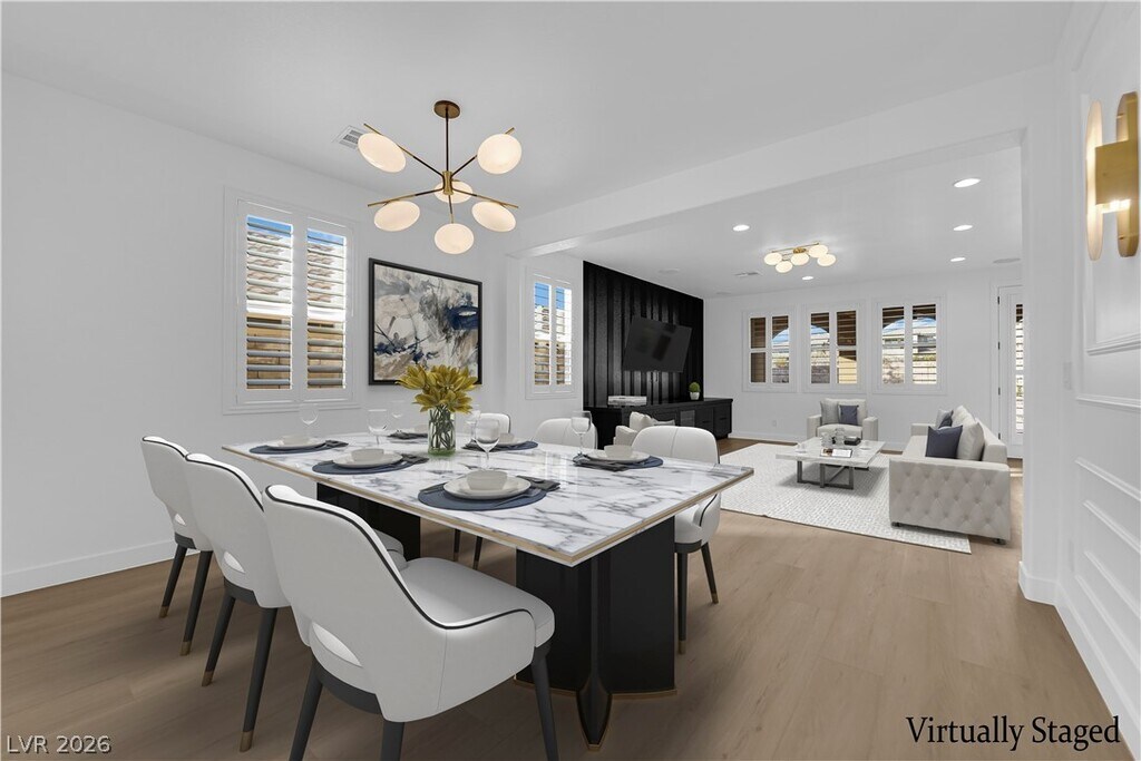 NEWLY RENOVATED!! Don't miss out on this EXCEPTIONAL, highly CUSTOMIZED beautiful home in the gated Paseos Village of Summerlin with no rear neighbors and breathtaking Red Rock Mountain views. This beautifully upgraded 2,645 sq ft home has undergone an extensive $250,000 renovation, including a thoughtfully redesigned backyard for true indoor-outdoor living. The home offers exceptional functionality with breathtaking custom kitchen with an oversized island, formal dining room, and expansive great room featuring custom built-ins and shutters. The primary bath includes a walk-in closet, large walk-in shower, soaking tub, and linen closet. The fully renovated backyard is designed for outdoor enjoyment, complete with a covered patio, synthetic turf, pavers, built-in BBQ, custom lighting, and multiple seating areas. Ideally located near parks, trails, and top-rated schools, this home seamlessly blends luxury, comfort, and functionality in one of Summerlin’s most desirable communities.