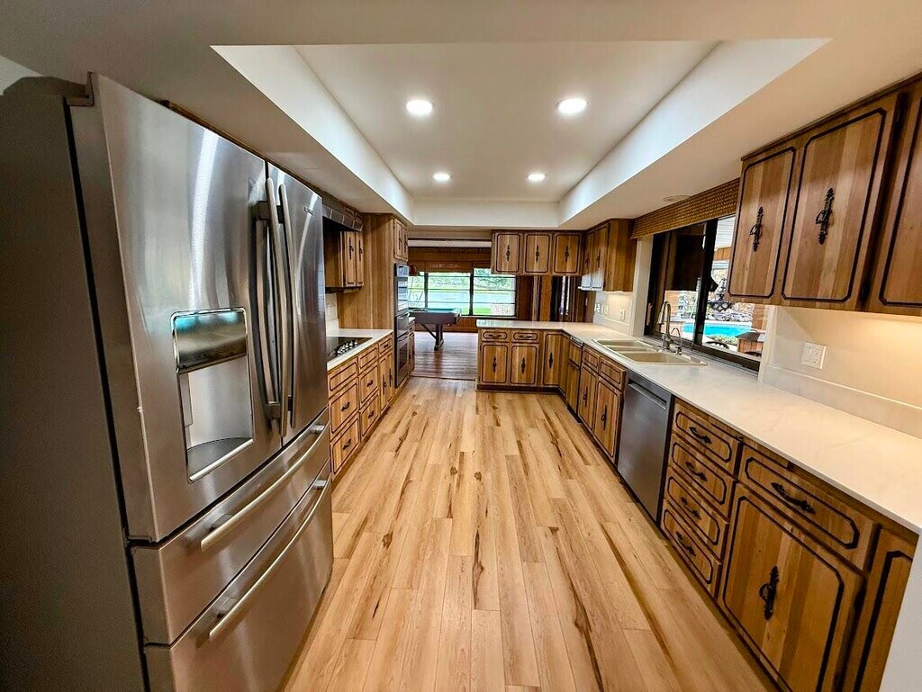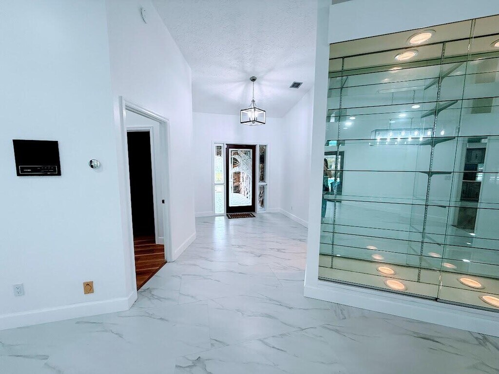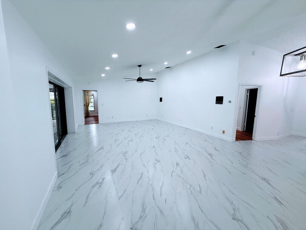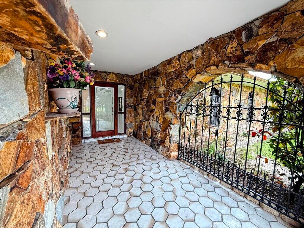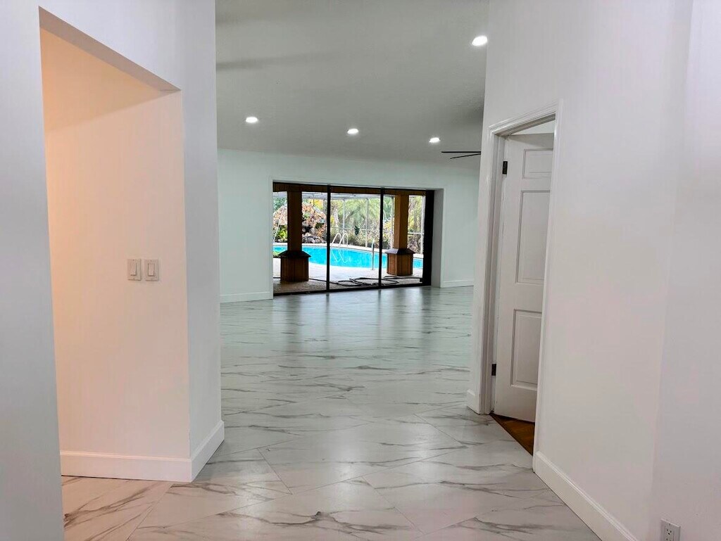Charming waterfront single-family residence available for lease offering 3 bedrooms and 2 bathrooms with peaceful river and backyard views. Spacious layout with abundant closet space throughout. Foyer,living/dining areas,and primary bedroom feature new matte-finished tile. Fully renovated primary bathroom with modern finishes. Great room offers original wood paneling,wood-burning fireplace,and pool table area overlooking the pool and river. Kitchen retains original charm with a breakfast bar pass-through window to the pool area for easy indoor-outdoor living. Screened-in pool and spa enclosure provides a private waterfront retreat. New metal roof (2024) and no HOA add value and flexibility. A rare waterfront rental with a 1 minute drive to the boat ramp across the river. MLS ID B26016373