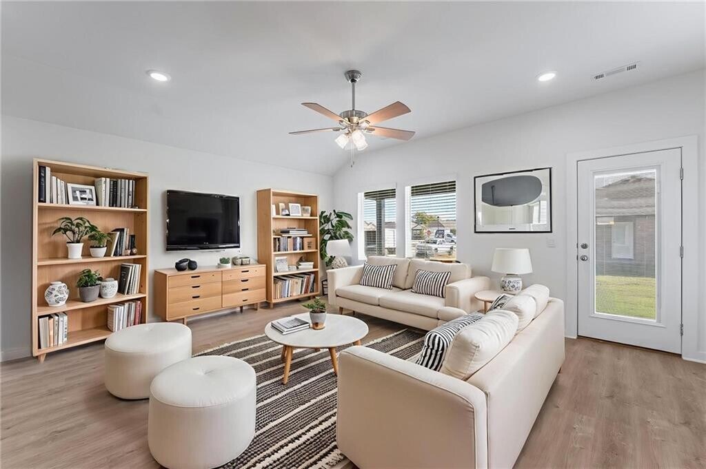 Brand-new and move-in ready! This stunning 4BR/3 full BA home in West Fayetteville features luxury vinyl plank flooring throughout, stainless steel appliances, a full-size refrigerator, washer, and dryer all included. Enjoy a spacious layout with ceiling fans, ample storage, and added garage shelving. Step outside to a covered back porch overlooking the fully fenced backyard (fence not pictured). Conveniently located near I-49, the University of Arkansas, and Fayetteville's scenic parks and trails, this new construction home offers modern comfort and an unbeatable location! MLS# 1327319
