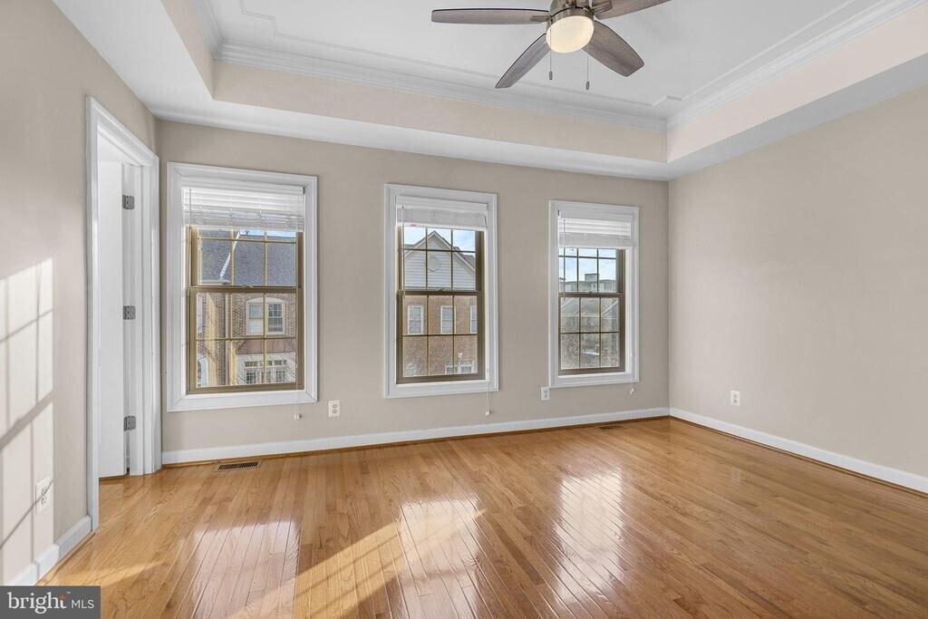 Welcome to this beautiful brick-front, 2-car garage townhome in the highly sought-after Stonegate community! Offering nearly 2,000 square feet of stylish living space, this home is packed with charm and thoughtful touches. The upper level boasts dual primary suites, each with generous walk-in closets and en-suite baths with dual vanities, plus the added convenience of bedroom-level laundry. On the main level, you will find an open and inviting layout that is perfect for entertaining. The living room flows effortlessly into the separate dining area and a tucked away powder room. Adjacent you will find a large kitchen with white cabinetry, a center island, quartz countertops, stainless steel appliances, and a cozy fireplace. There’s even extra space for sitting or dining, all leading out to a lovely deck where you can relax or host friends. The lower level offers even more space with a large recreation room, another fireplace, a half bath, and a walk-out to the patio and fenced yard—ideal for enjoying the outdoors. Bonus features like elegant crown molding, ceiling fans, and gorgeous hardwood flooring throughout make this home extra special. The Stonegate community is full of amenities, including lush common areas, a pool, playgrounds, grills, patios, and scenic walking trails. Plus, it’s just minutes from I-395, Bailey's Crossroads, Shirlington, and plenty of shopping, dining, and grocery options. This home truly has it all—comfort, convenience, and charm! EV charger in garage for tenant use. Minimum credit score of 700. Minimum annual income of 40 times monthly rent. Pets- CASE BY CASE $500 deposit, $50 monthly pet rent.