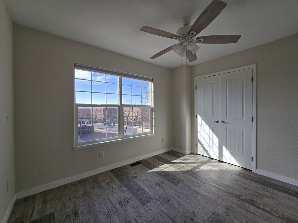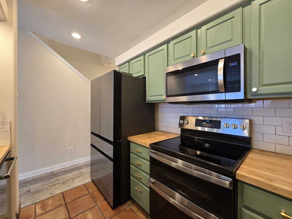 Welcome to this beautifully updated 3-bedroom, 1.5-bathroom, 1,170 sq. ft. townhouse, offering a perfect blend of modern style and everyday convenience. The house is going to be rented unfurnished. The main level features an open-concept living area with luxury vinyl plank flooring that flows seamlessly into the kitchen. The chef-friendly kitchen stands out with its chic, updated green cabinetry, butcher block countertops, white subway tile backsplash, and stainless steel appliances, including a four-door refrigerator. An inviting breakfast bar is perfect for casual dining and entertaining. One bedroom and a powder room are also conveniently located on the main floor. Upstairs, you'll find two bright bedrooms and a full bathroom. The entire home is finished with contemporary paint and ceiling fans in the bedrooms for comfort. Outside, enjoy your own private, low-maintenance gravel backyard, enclosed by a privacy fence—ideal for pets or a cozy outdoor retreat. Essential amenities include a dedicated laundry closet with a washer and dryer and a utility sink. The home's exterior features a charming Southwestern-style stucco finish with wooden accents. Unit also includes a convenient parking space at the rear of the building. Small pets will be considered by owner. This stylish, townhome is ready for its next tenant! Brant Goodman, Qualifying Broker. Rental Fees & Policies Pet Policy • $250 non-refundable pet administration fee • $50/month per pet Early Lease Termination • Fee equal to one month’s rent plus gross receipts tax • Tenant remains responsible for rent and utilities until the unit is re-rented Payment Policies • Late Fee: 5% of monthly rent if payment is not received on time • NSF Fee: $25 charge for returned payments Utilities • Tenants are responsible for establishing and paying all utilities directly with the utility companies. Renter’s Insurance • Tenants are required to obtain and maintain renter’s insurance for the duration of the lease Contact: Katelynn James Landseer Management 613 Old Santa Fe Trail Santa Fe, NM 87505