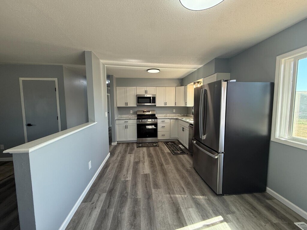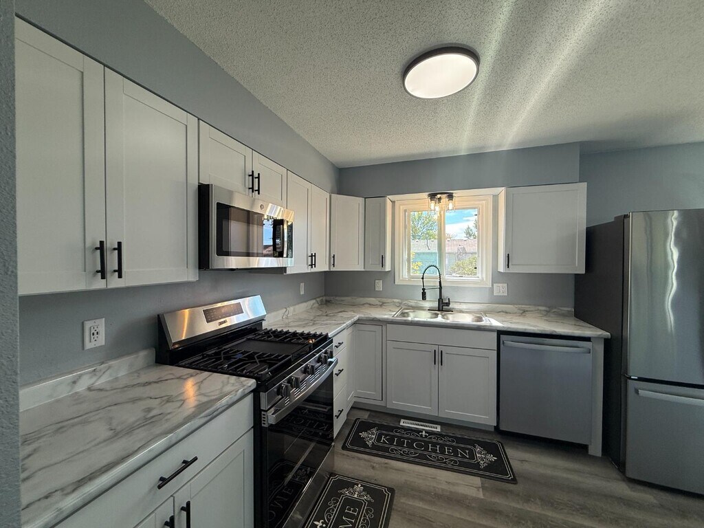 Welcome home to this beautifully remodeled 5-bedroom, 2-bath home offering modern comfort and convenience! Recent updates include new windows, doors, decks, roof, kitchen with appliances, bathrooms, paint inside and out, carpet, LVT flooring, and LED lighting throughout—completely move-in ready. The bright kitchen provides ample storage and counter space, while the main floor features three bedrooms with great natural light and a full bath. The lower level boasts a spacious family room with a new electric fireplace, plus two additional bedrooms and a second bath. Outside, enjoy a large fenced yard with endless possibilities. Conveniently located near Rapid Valley Elementary, shopping, the I-90 corridor, and EAFB. Tenant pays all utilities. Non-smoking. Dogs approved with references.