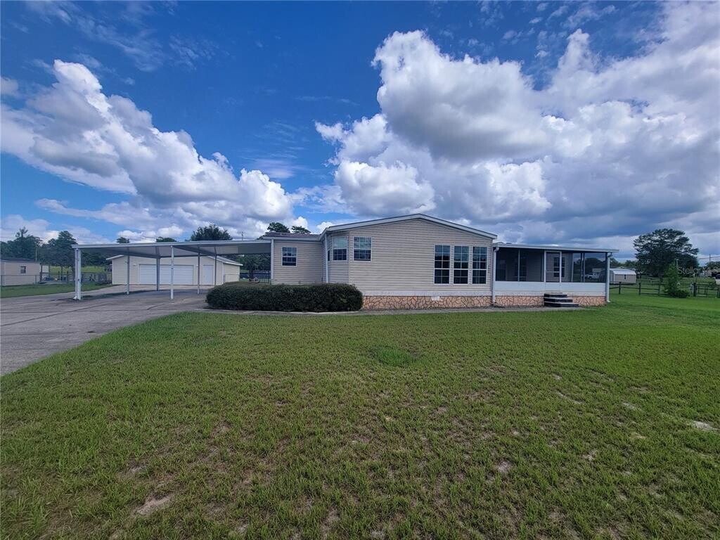 This beautifully maintained 3-bedroom,2-bath mobile home offers comfort,space,and functionality inside and out. Step into a spacious living room featuring a cozy fireplace,perfect for relaxing evenings. The large kitchen is a cook’s dream with a center island,bar-top seating,and plenty of counter space for meal prep and entertaining. Enjoy ceiling fans throughout the home for year-round comfort. Carpeted bedrooms provide warmth and comfort,while laminate flooring in the main living areas adds style and easy maintenance. The primary suite includes a generous master bath complete with a soaking tub,walk-in shower,and ample space for daily routines. Outdoor features include a 2-car carport,detached 2-car garage,fenced yard for privacy and pets,and a large covered rear deck—ideal for entertaining or relaxing outdoors. The screened front porch with tile flooring adds a welcoming touch and a great place to enjoy your morning coffee. Don’t miss this well-rounded home that combines comfortable living with practical features and outdoor enjoyment! MLS# OM709166